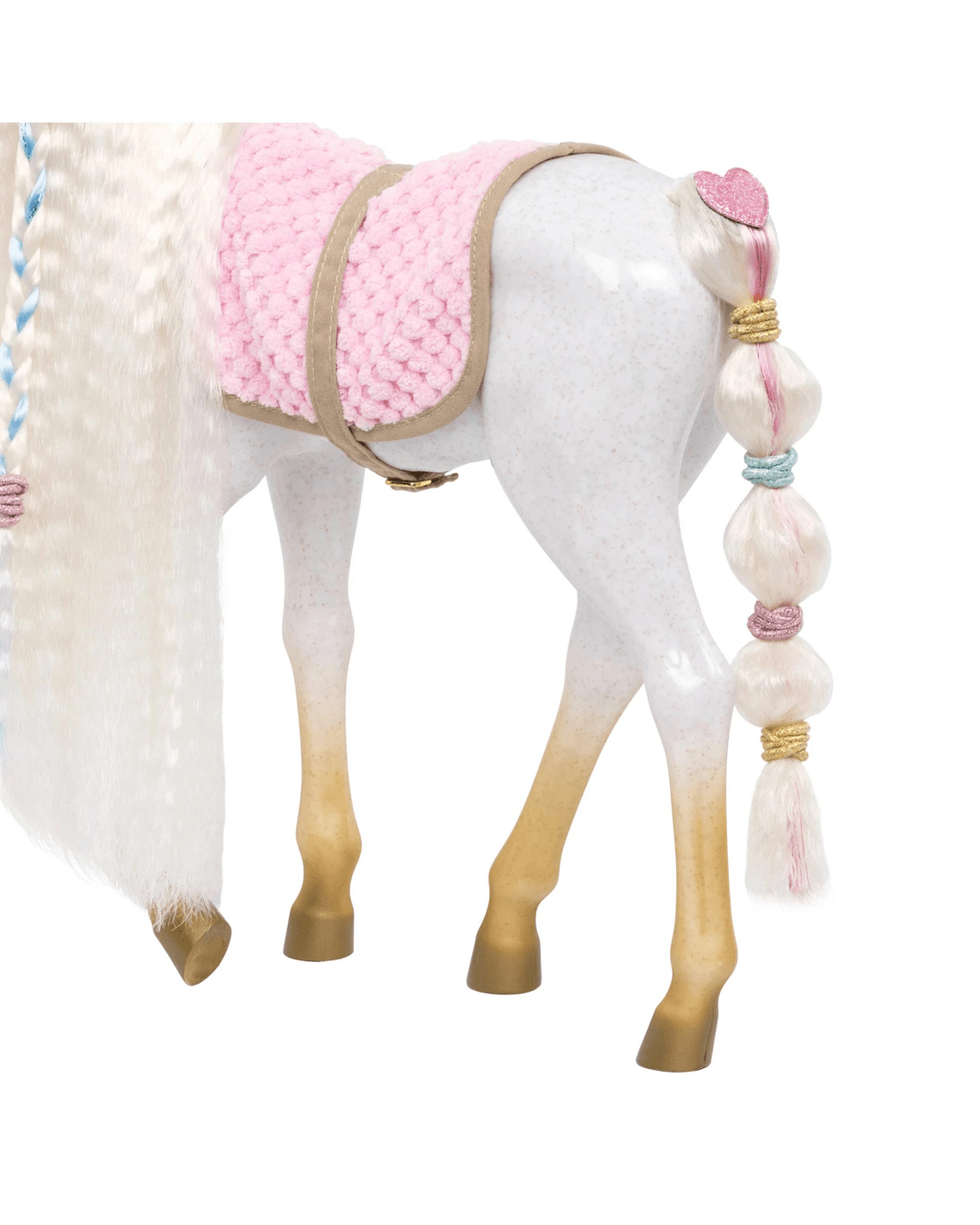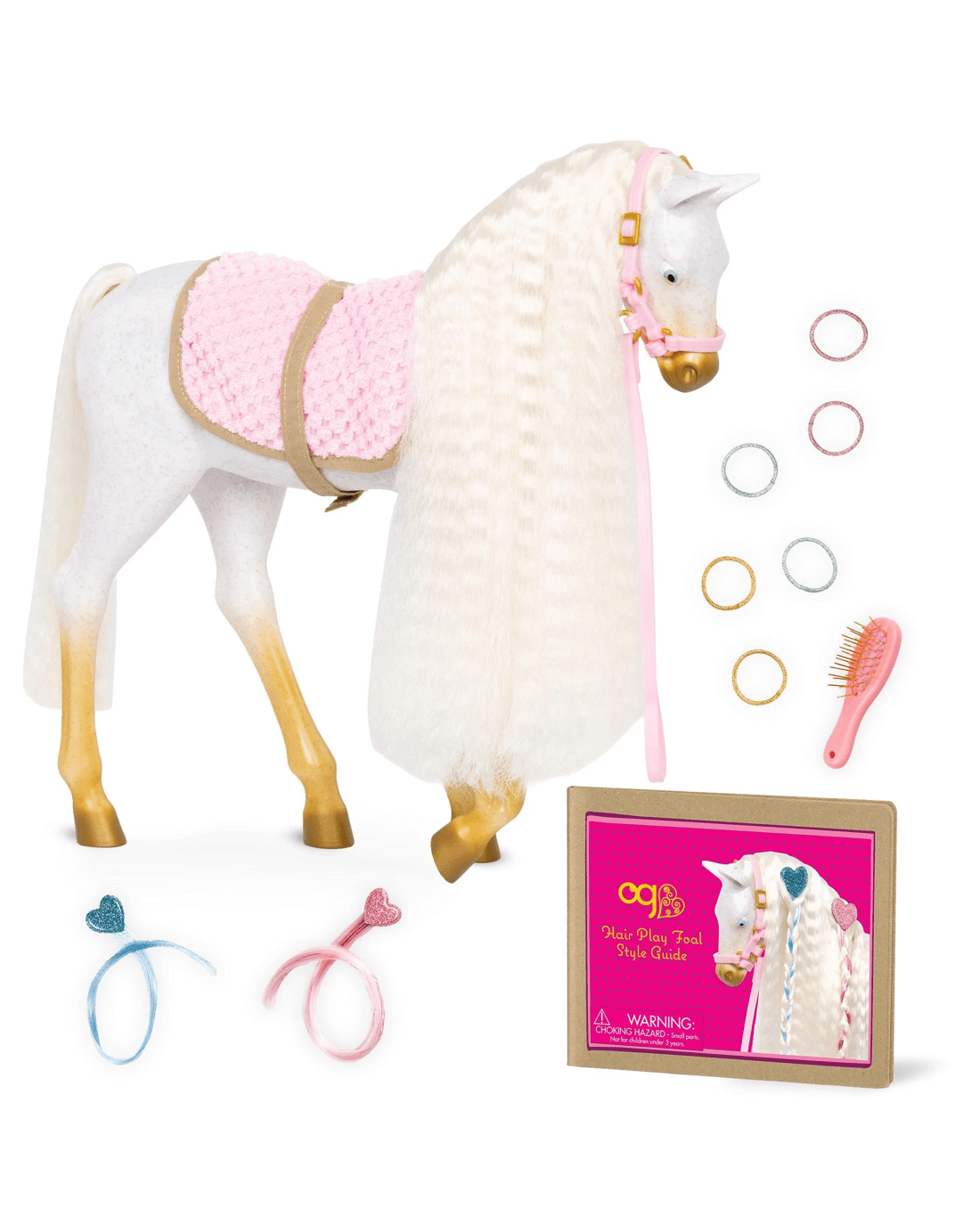 Turn playtime into a creative adventure with the Our Generation Andalusian Hair Play Foal. This charming toy horse features a snowy white body and shiny golden hooves, as well as an extra-long mane and tail that invite little ones to invent beautiful styles. With colourful heart-shaped hair accessories and stretchy elastics, your child can try new looks every day. Once their masterpiece is ready, the soft pink saddle ensures the horse is prepared for exciting journeys through imaginary hillsides. A wonderful way to encourage creative thinking and storytelling, this foal is sure to bring joy to any mini equestrian. Don’t miss out—make it a special addition to your playroom!