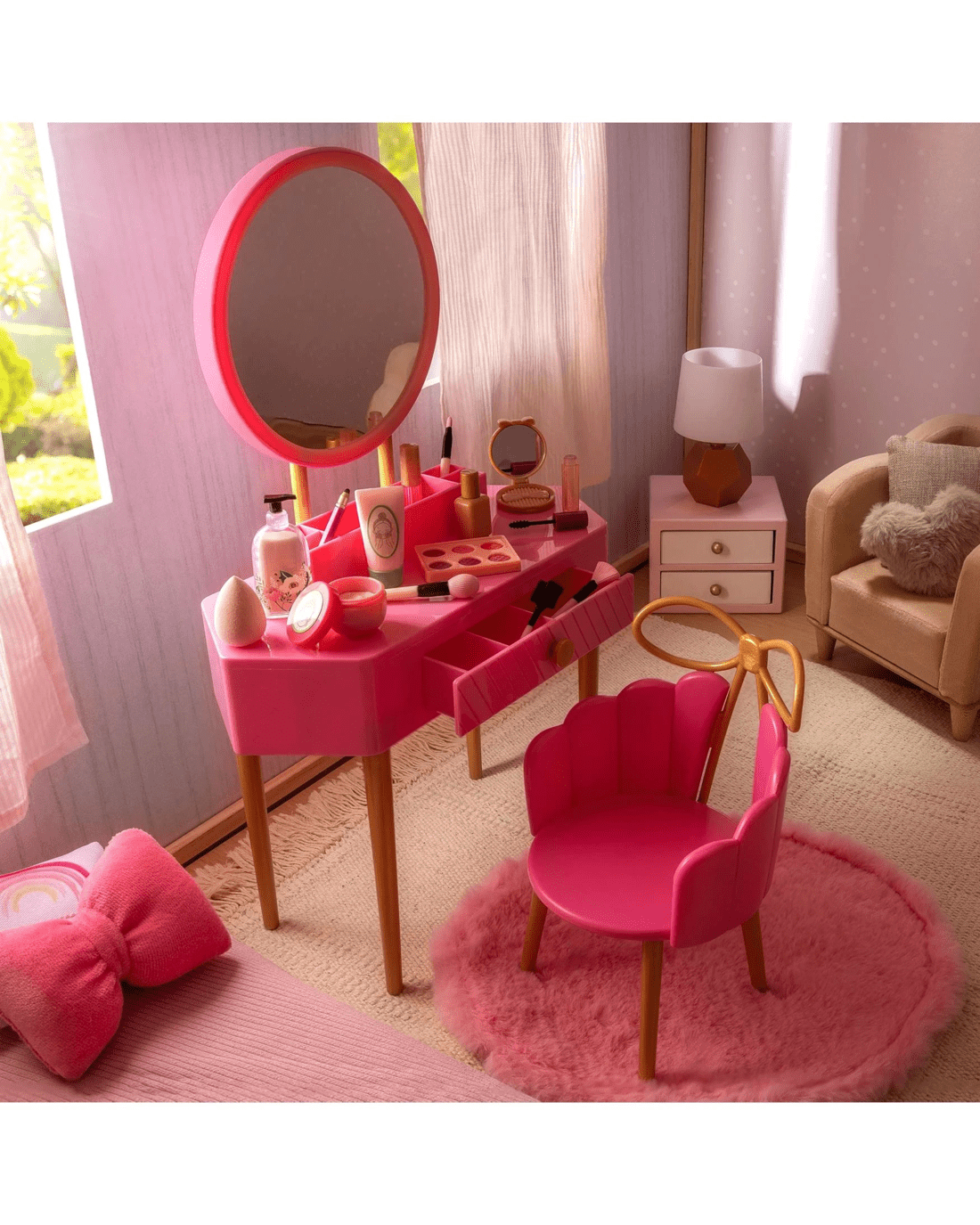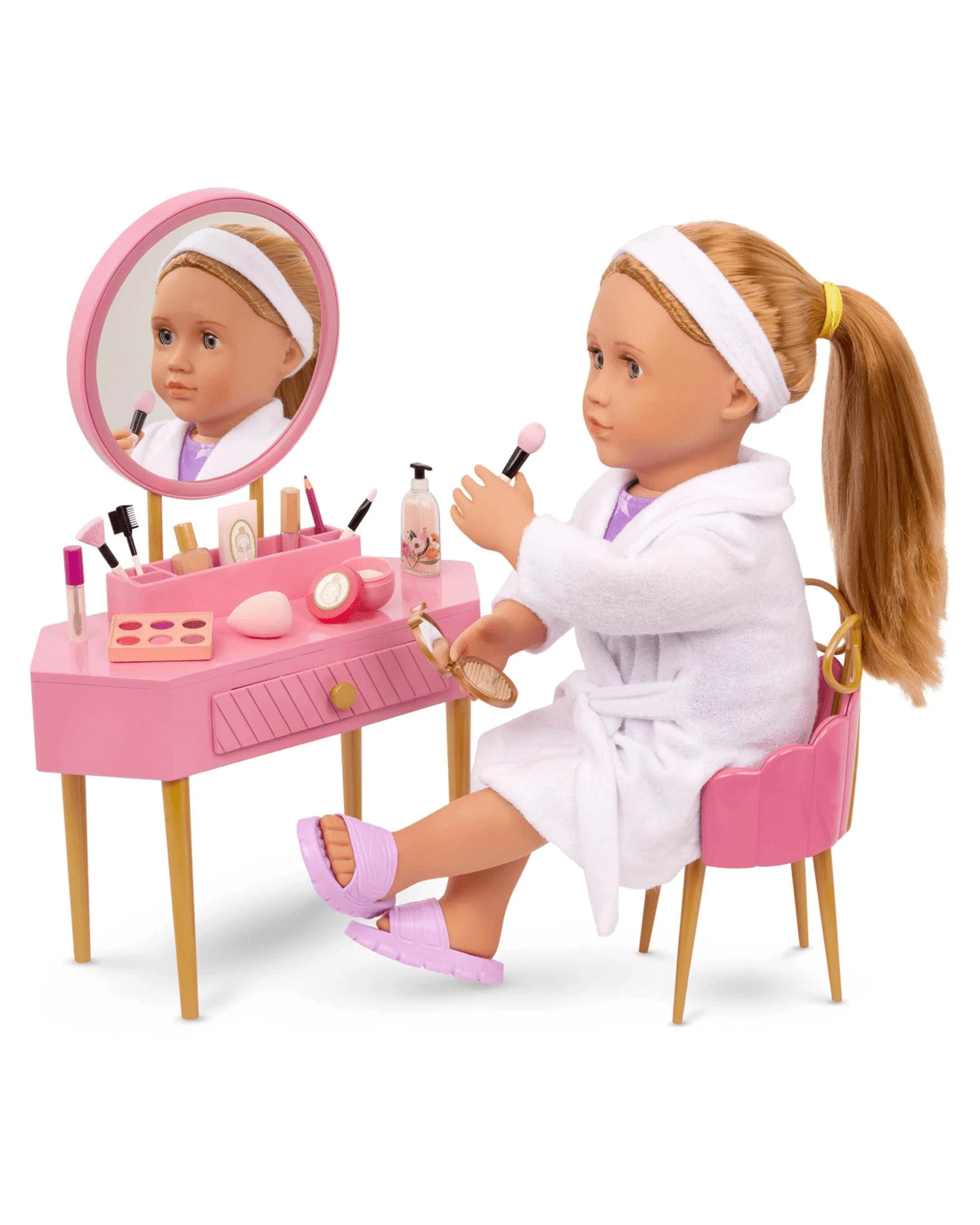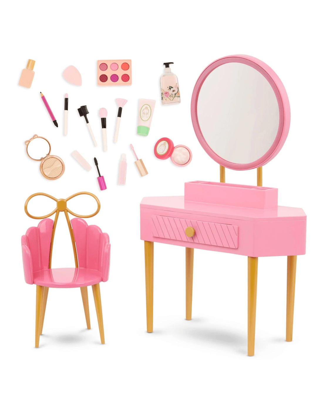 Our Generation Fabulous Fun Vanity Set Pink Vanity Table & Accessories for 18-inch Dolls - Multi