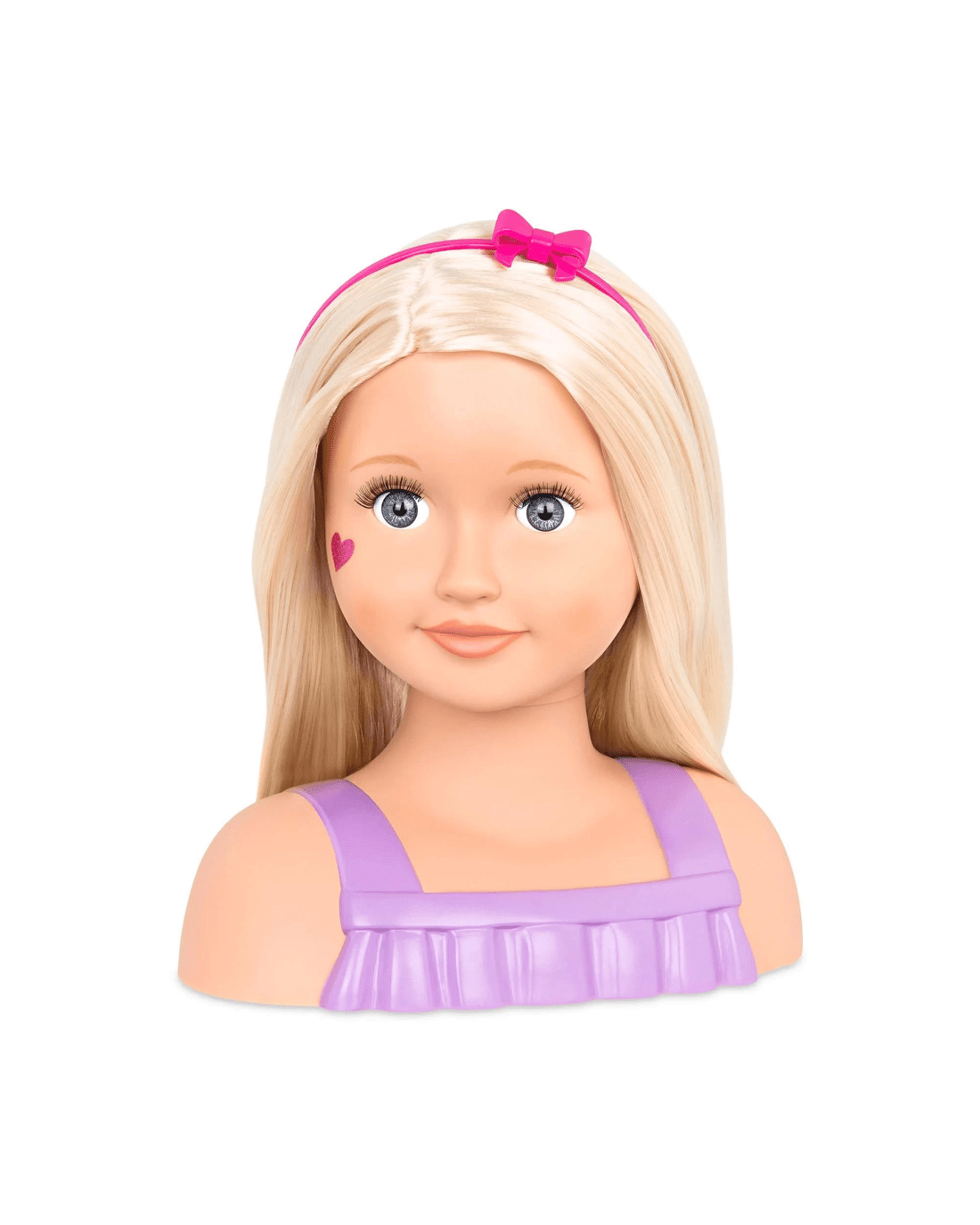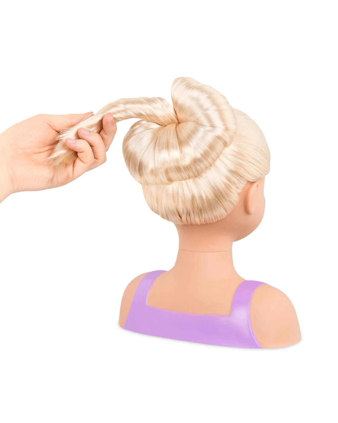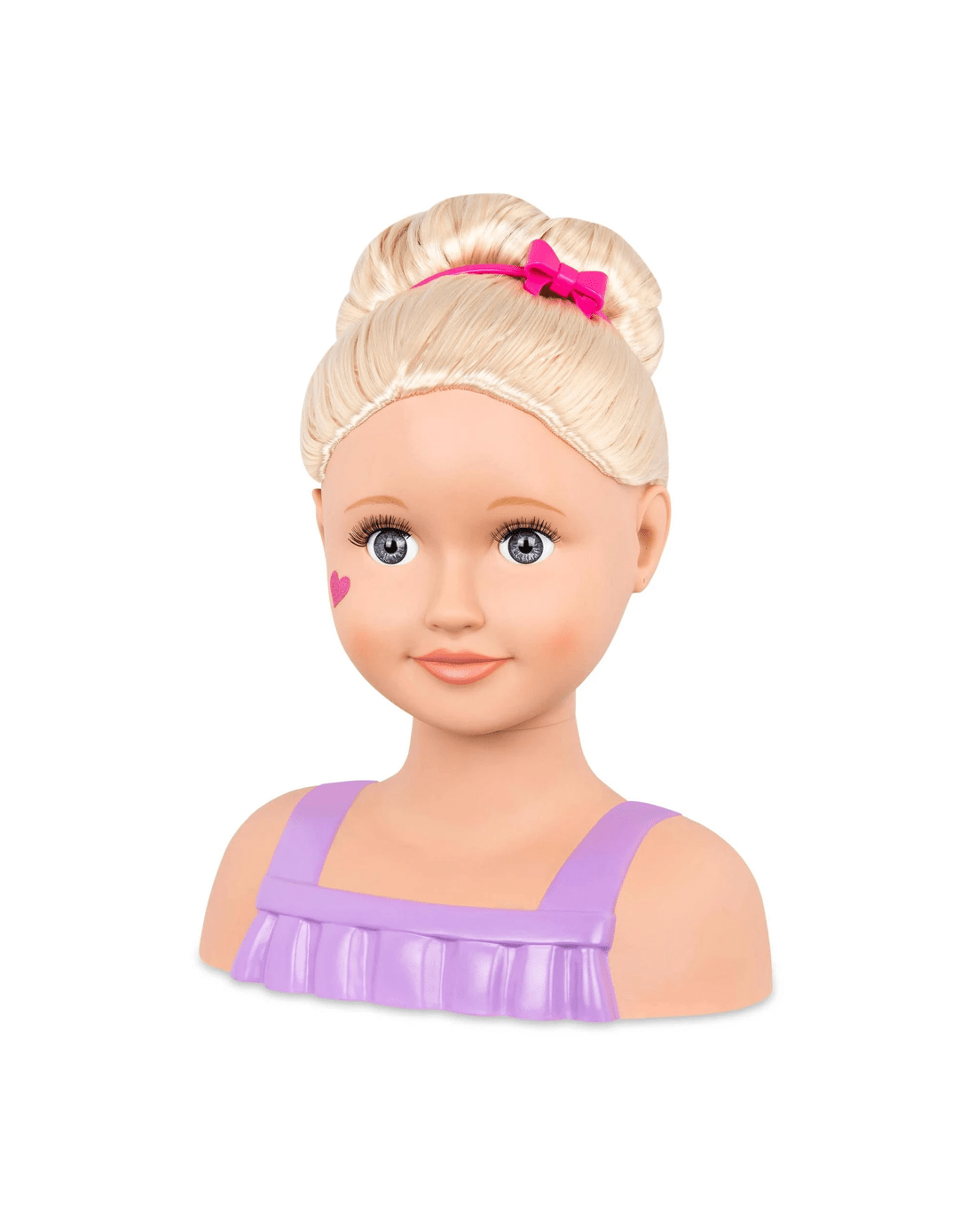 Bring a touch of magic to your playtime with the Our Generation Styling Head - Trista. Bursting with personality, Trista is ready for all your creative hairstyles, whether you fancy braids, curls, or something sparkling in between. With her beautiful, long, white-blonde hair and striking grey eyes, she’s the perfect companion for learning new styling techniques. Get hands-on with the included hair accessories, from colourful clips to playful bows, then add a dash of shimmer with sparkling stickers. The easy-to-follow styling booklet will inspire you to create countless fabulous looks. Whether you’re just starting out or already love experimenting with hairstyles, Trista is the perfect way to boost your styling skills and confidence. Let your imagination run wild and make every play day a glamorous experience – Trista can’t wait to see your next masterpiece!