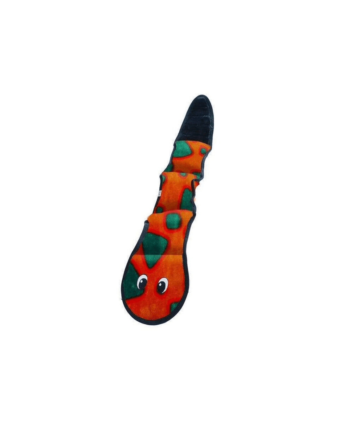Sold by Pet StationOutward Hound Invincible Snake Plush Dog Toy with 3 Squeakers Orange/Blue