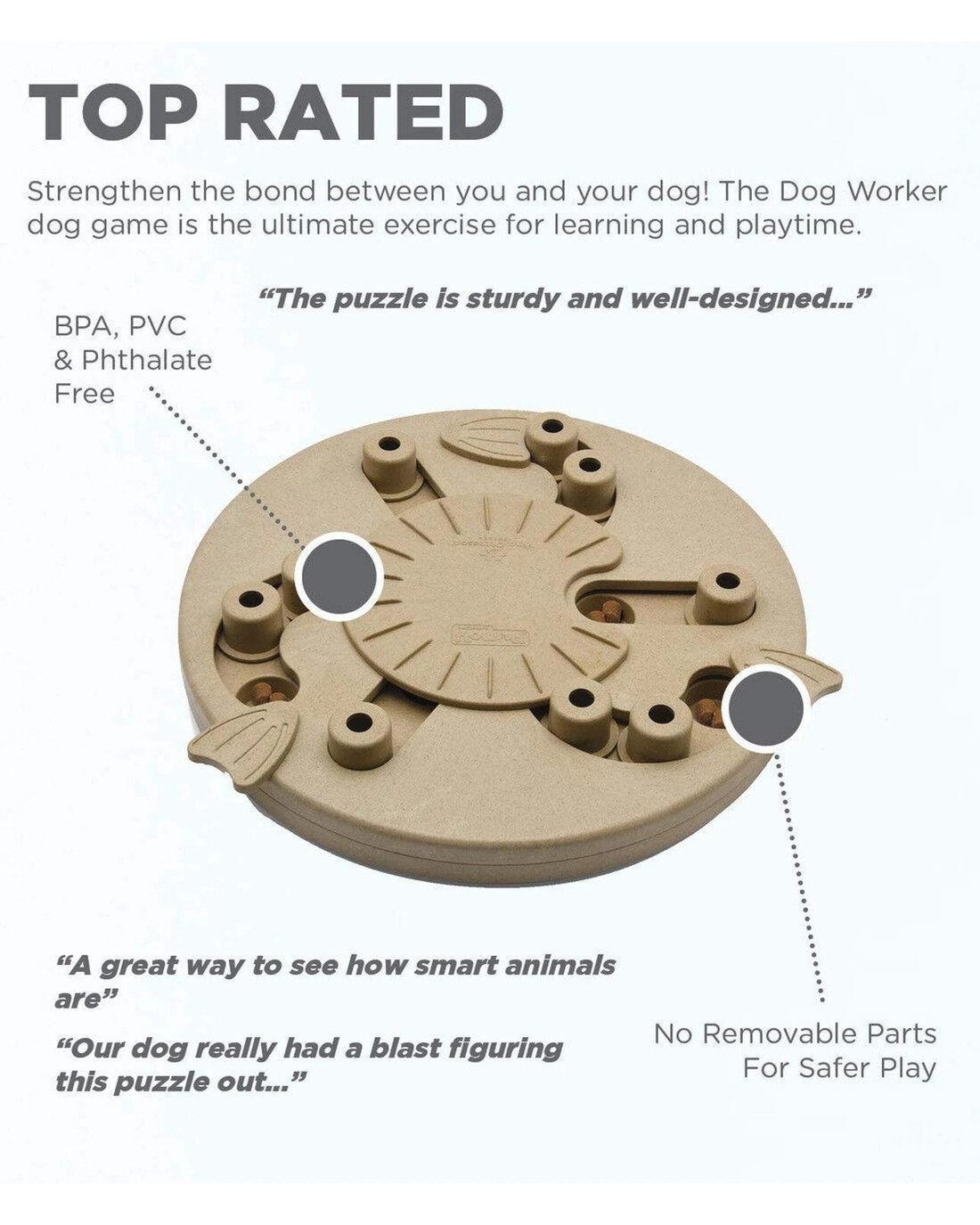 - NO REMOVABLE PARTS: The Dog Worker dog puzzle is durably designed with built-in play pieces that don't come out when your dog plays