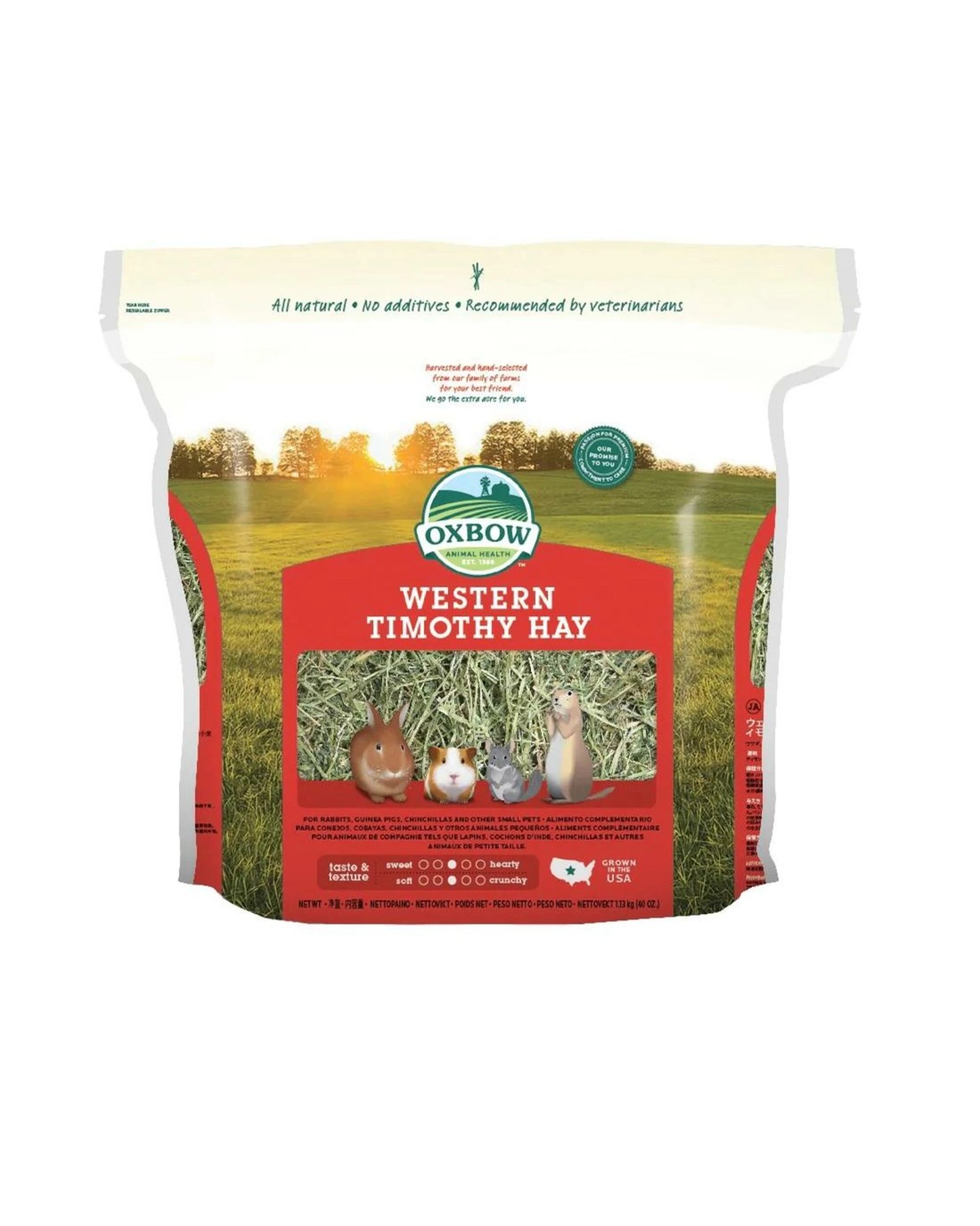 Oxbows all-natural Western Timothy Hay is a nutritious, sweet-smelling grass that will stimulate the appetite of your rabbit and guinea pig, or other small pet.