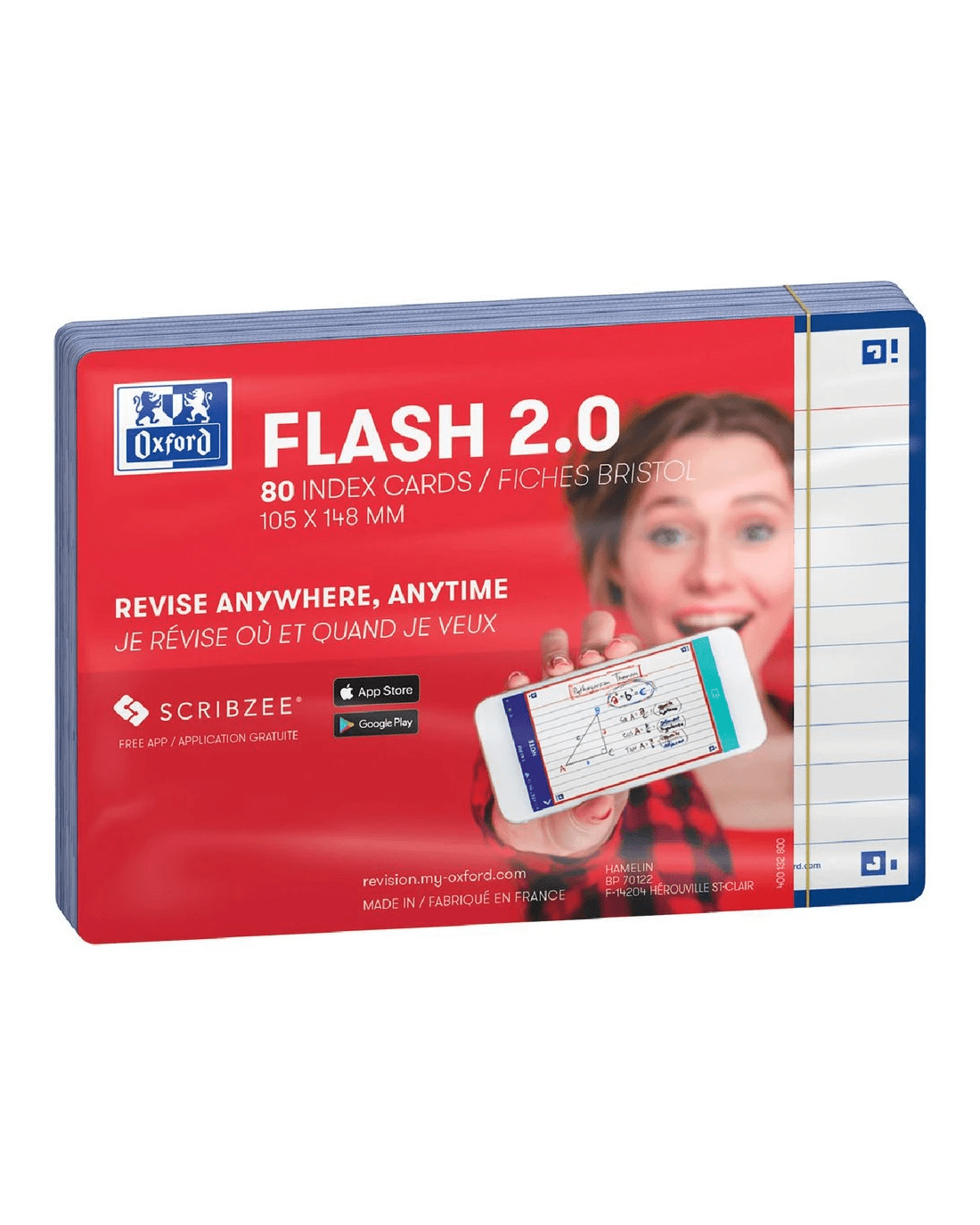 Oxford Flash 2.0 Index Cards Ruled 105 x 148mm Navy 80 Pack
