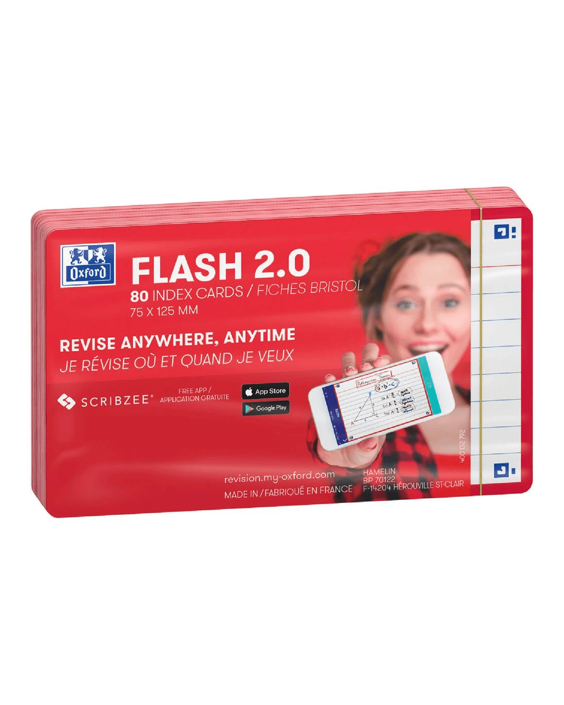 Sold by OfficeworksOxford Flash 2.0 Index Cards Ruled 75 x 125mm Red 80 Pack