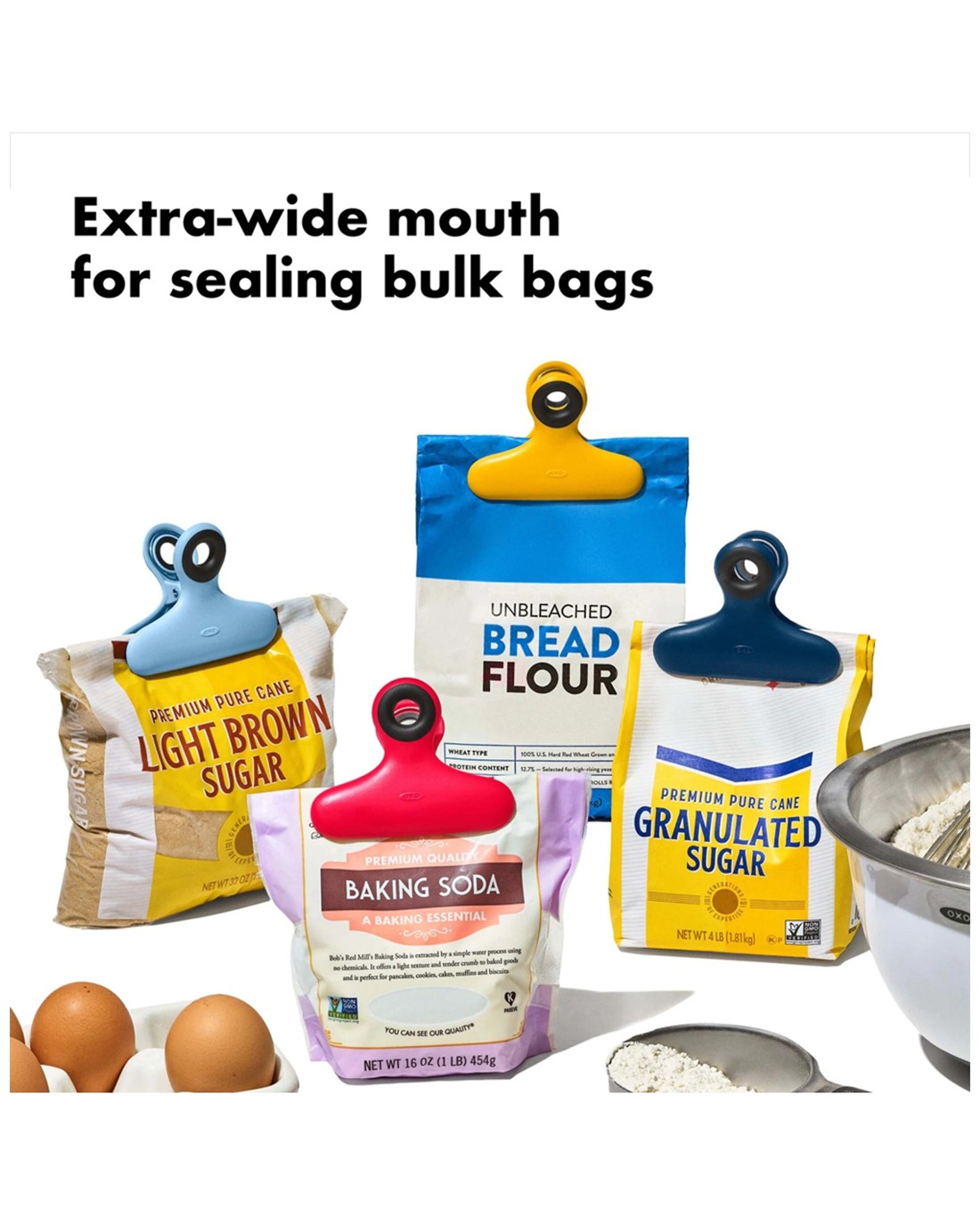The OXO Good Grips Heavy Duty Clip Bag Sealer is designed for securely sealing snack and flour bags to prevent spills and keep food fresh. These robust clips are perfect for busy kitchens, offering reliable sealing power and convenient storage options.With their extra wide mouths, these clips grip large bags effectively. The soft non-slip touch points ensure comfortable handling, while the built-in magnets and holes for hanging make them easy to organise and store when not in use. Despite their heavy-duty performance, they are lightweight and easy to handle.Key Features:Heavy-Duty Sealing Power: Designed with extra wide mouths to securely seal large snack or flour bags, preventing spills and maintaining freshness.Reliable Grip: Built to stay clipped on, addressing common issues of clips popping off and ensuring food stays fresh and tidy.Multi-Functional Design: Includes holes for hanging and built-in magnets for easy storage and organisation in any kitchen.Comfortable Handling: Features soft non-slip touch points for a secure grip and ease of use during sealing tasks.Long-Lasting Durability: Made from sturdy plastic and built to withstand repeated use in busy kitchen environments.Specifications:Brand: OXOProduct Type: Kitchen GadgetPack Size: 4 piecesDimensions: 8.9cm wideDesign features: Non-slip touch points, hanging holes, magnets