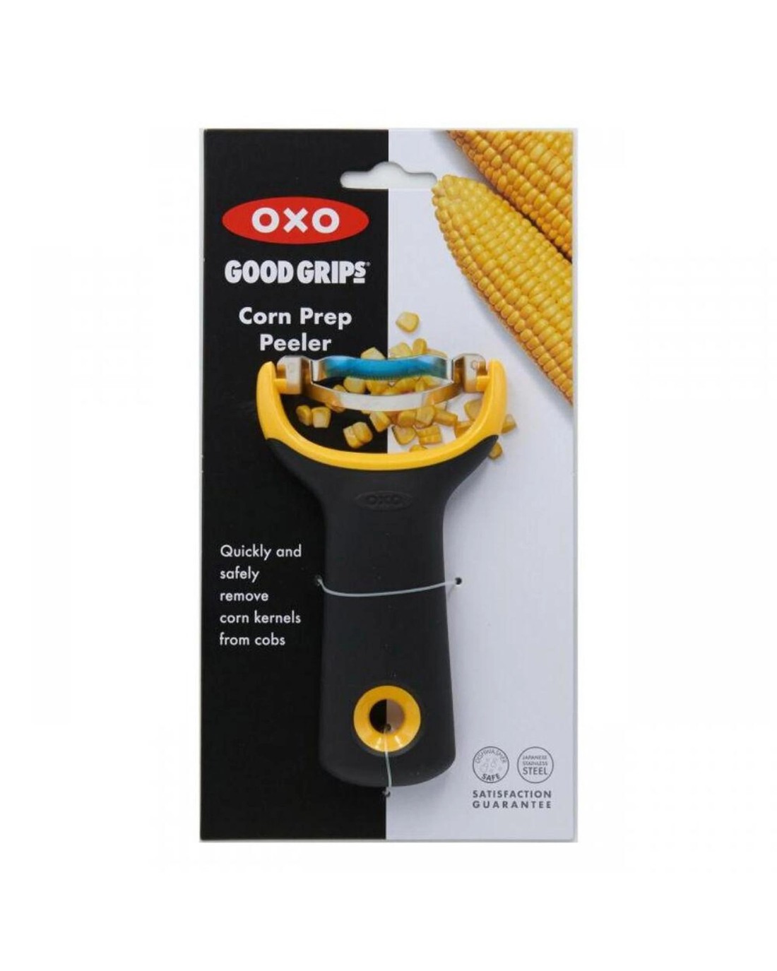 Remove kernels from corn cobs quickly and safely with the OXO Good Grips Corn Prep Peeler. Its compact design features sharp, rust-proof stainless steel blades and an ergonomic non-slip handle for comfortable control, even during extended prep sessions.