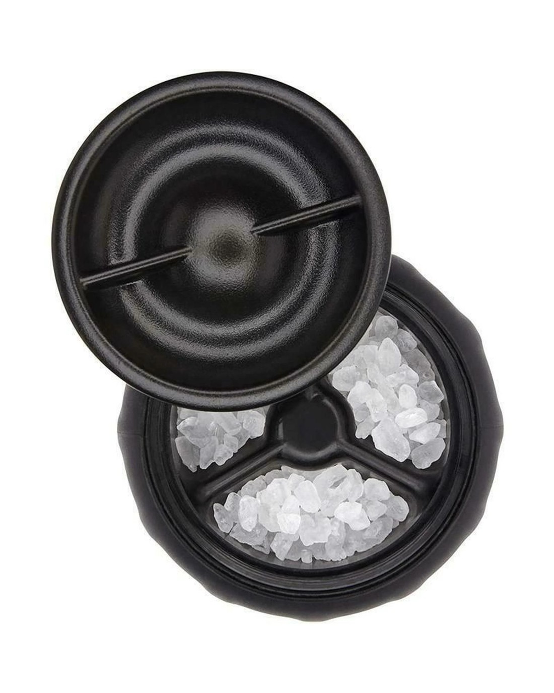 • Rotate tabs to easily adjust Grinder settings from fine to coarse; Grinders are filled with sea salt and black peppercorns