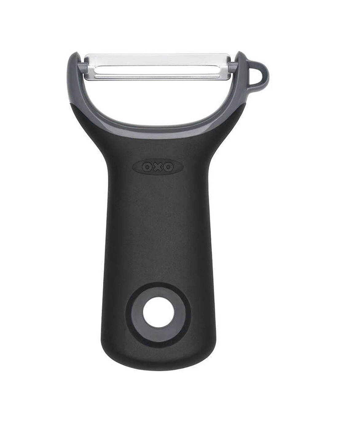 The OXO Prep Y Swivel Peeler is designed for effortless peeling of fruits and vegetables. Its ergonomic shape and sharp Japanese stainless steel blade make peeling smooth and precise, ideal for kitchen preparation tasks. This compact peeler features a built-in potato eyer to remove blemishes easily and a non-slip handle for comfortable control. Its dishwasher safe construction ensures easy cleaning after use. Key Features: Effortless Peeling: The ergonomic design and sharp blades allow for smooth and precise peeling of fruits and vegetables. Built-in Potato Eyer and Dishwasher Safe: Easily removes blemishes and is simple to clean. Ergonomic Non-slip Handles: Provides a comfortable grip and better control while peeling, reducing hand fatigue. Compact and Easy to Maneuver: Designed for comfortable handling around produce, making peeling quicker and more comfortable. Durable Rust-proof Blades: Ensures long-lasting performance and resistance to corrosion for daily kitchen use. Specifications: Brand: OXO Product Type: Kitchen Utensil Form: Peeler Design: Y-Shaped, ergonomic handle Blade: Straight sharp stainless steel blade Built-in Potato Eyer: Yes Dishwasher Safe: Yes