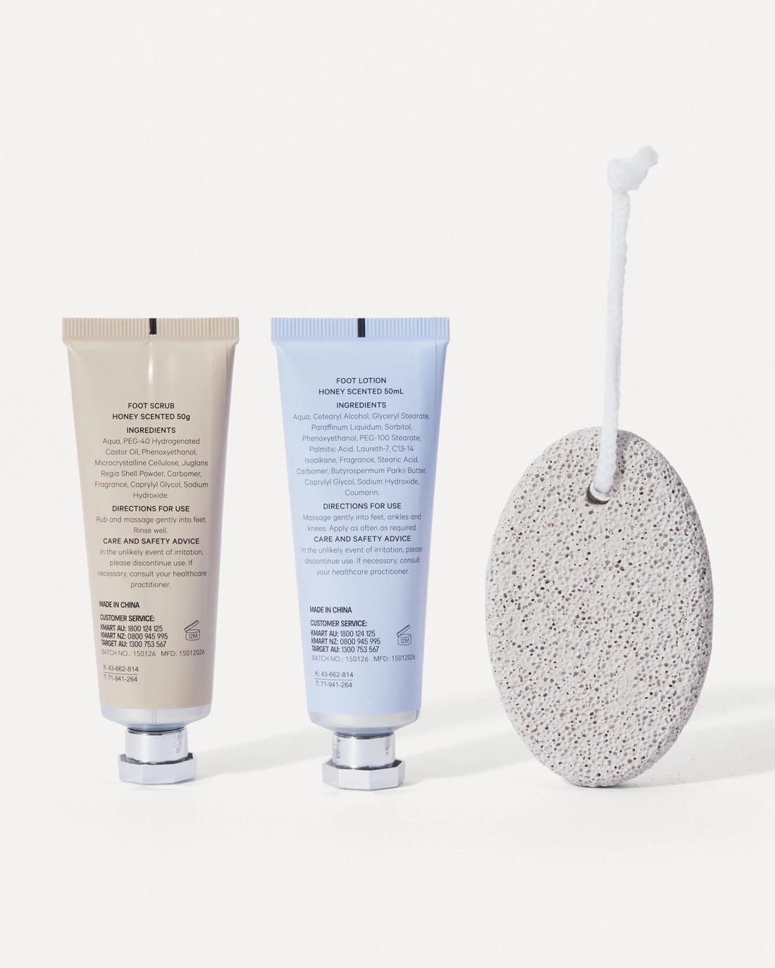 - Includes 1 x Foot Lotion, 1 x Foot Scrub, 1 x Pumice Stone and 1 x bag