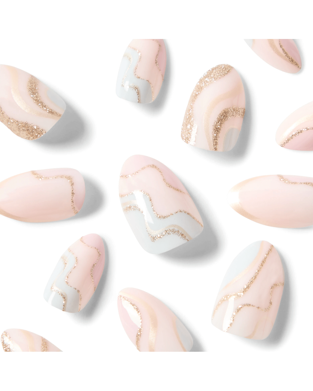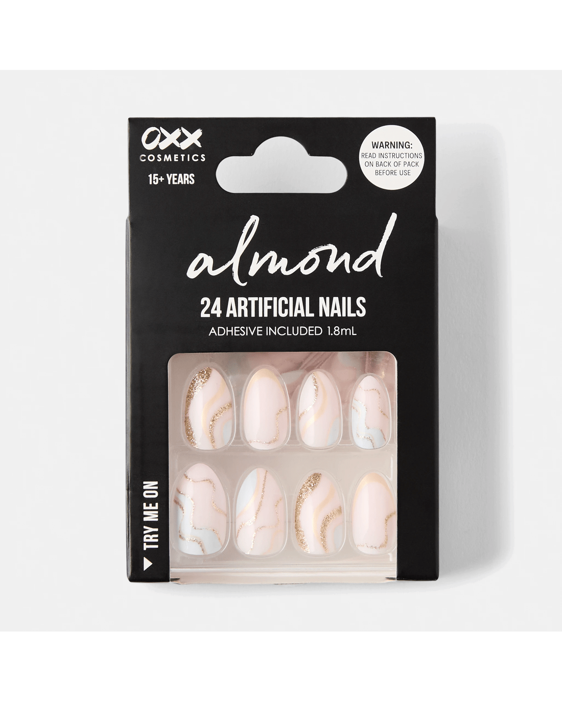 Sold by KmartOXX Cosmetics 24 Pack Artificial Nails with Adhesive - Almond Shape, Pink and Gold Glitter