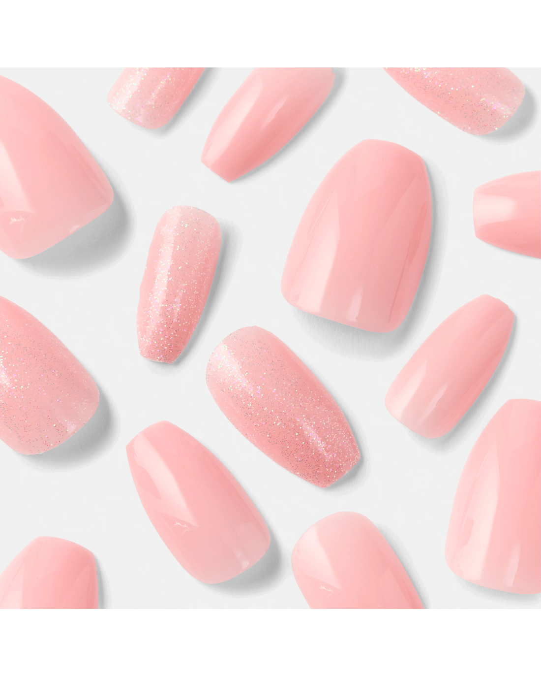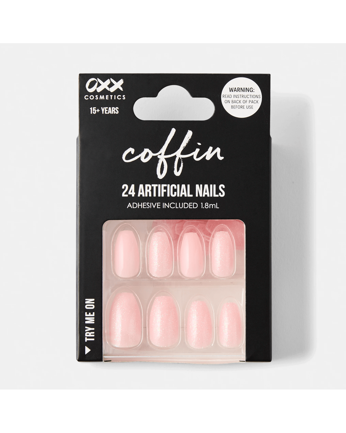 OXX Cosmetics 24 Pack Artificial Nails with Adhesive - Coffin Shape, Pink Shimmer