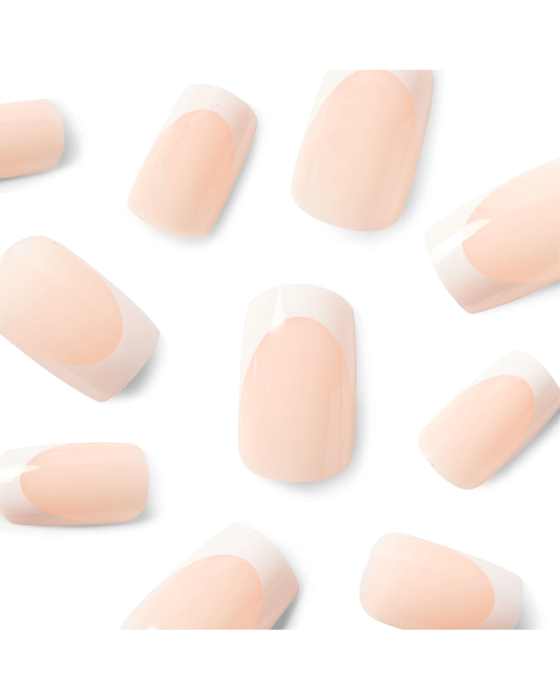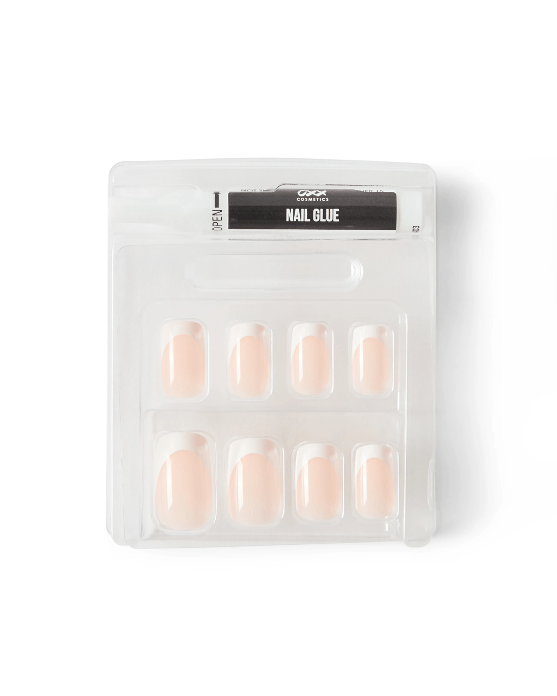 OXX Cosmetics 24 Pack Artificial Nails with Adhesive - Medium Square Shape, French Tip
