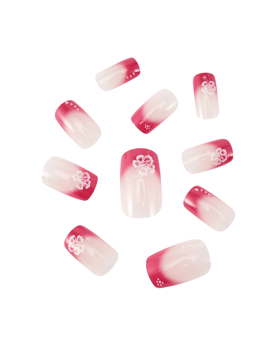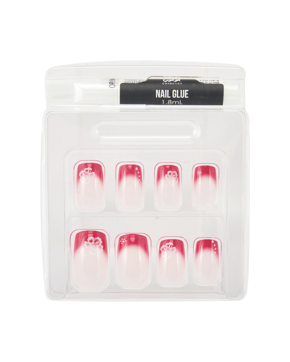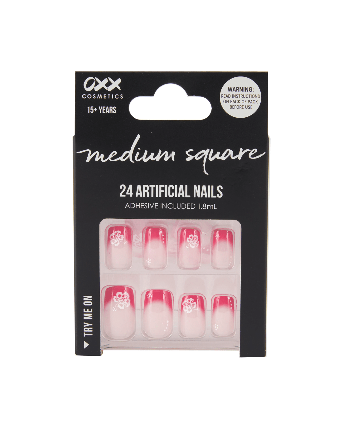 OXX Cosmetics 24 Pack Artificial Nails with Adhesive - Medium Square Shape, Hibiscus