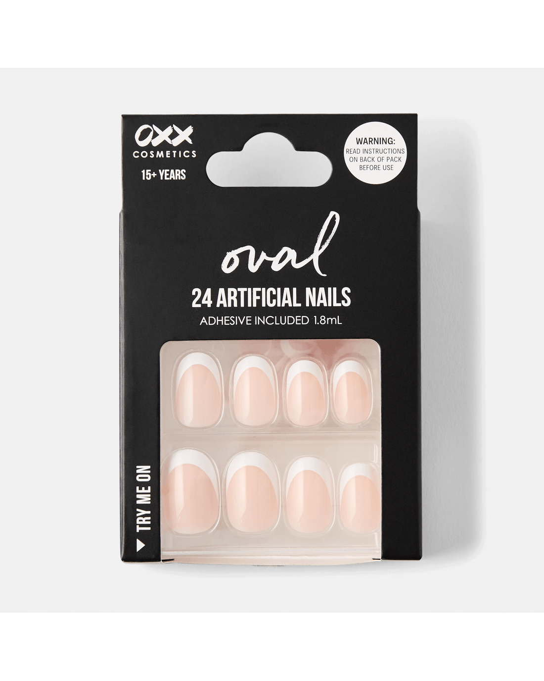 Sold by KmartOXX Cosmetics 24 Pack Artificial Nails with Adhesive - Oval Shape, French Tip