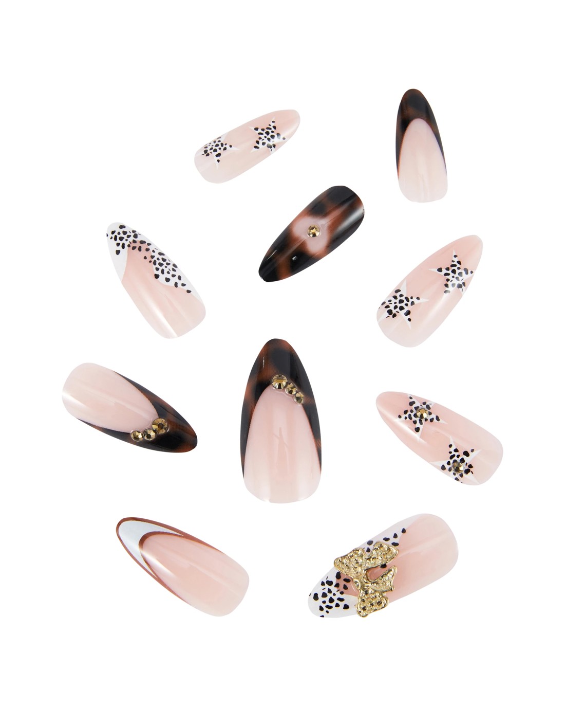 Sold by KmartOXX Cosmetics 24 Pack Artificial Nails with Adhesive - Pointed Stiletto Shape, Leopard Gold Gems