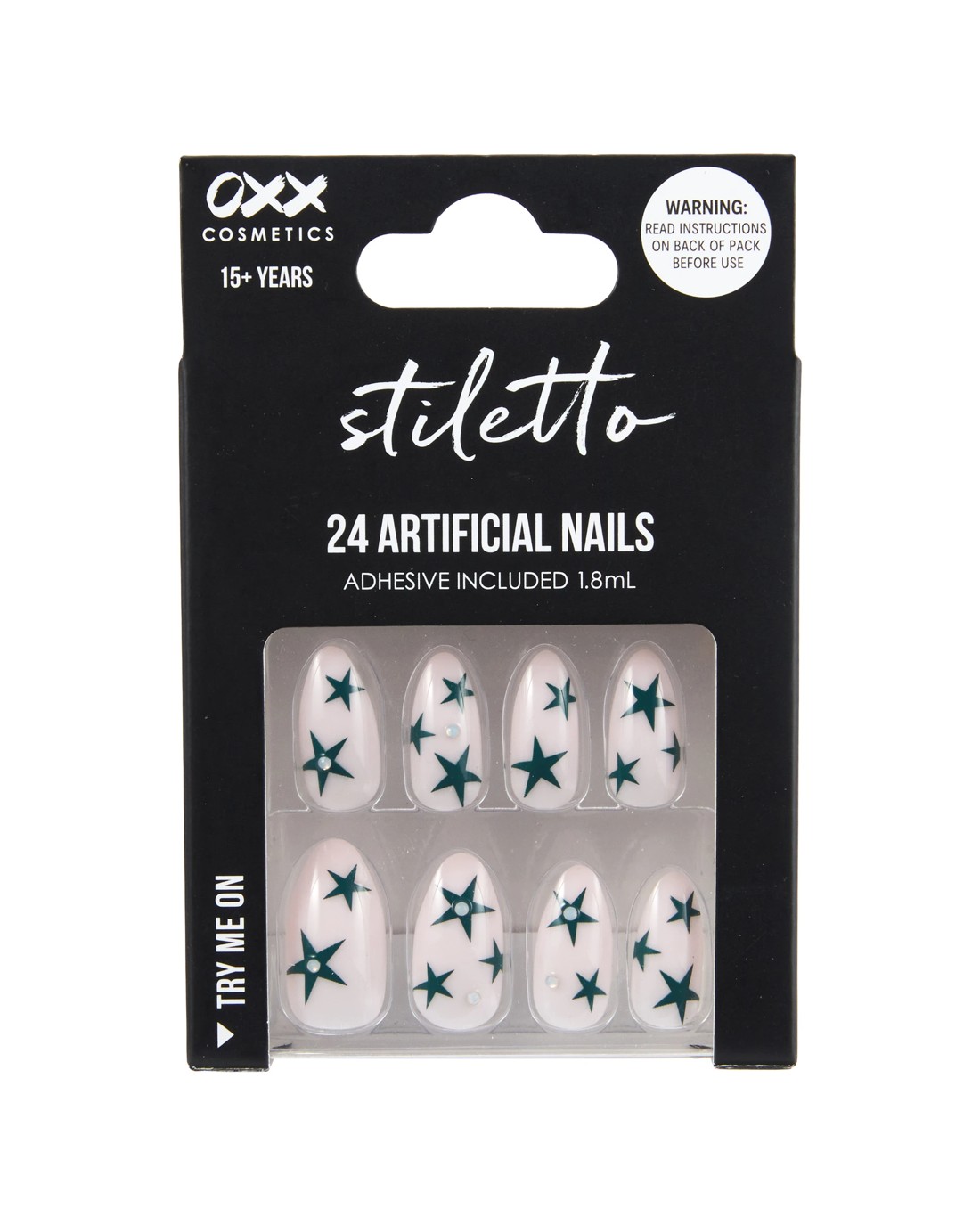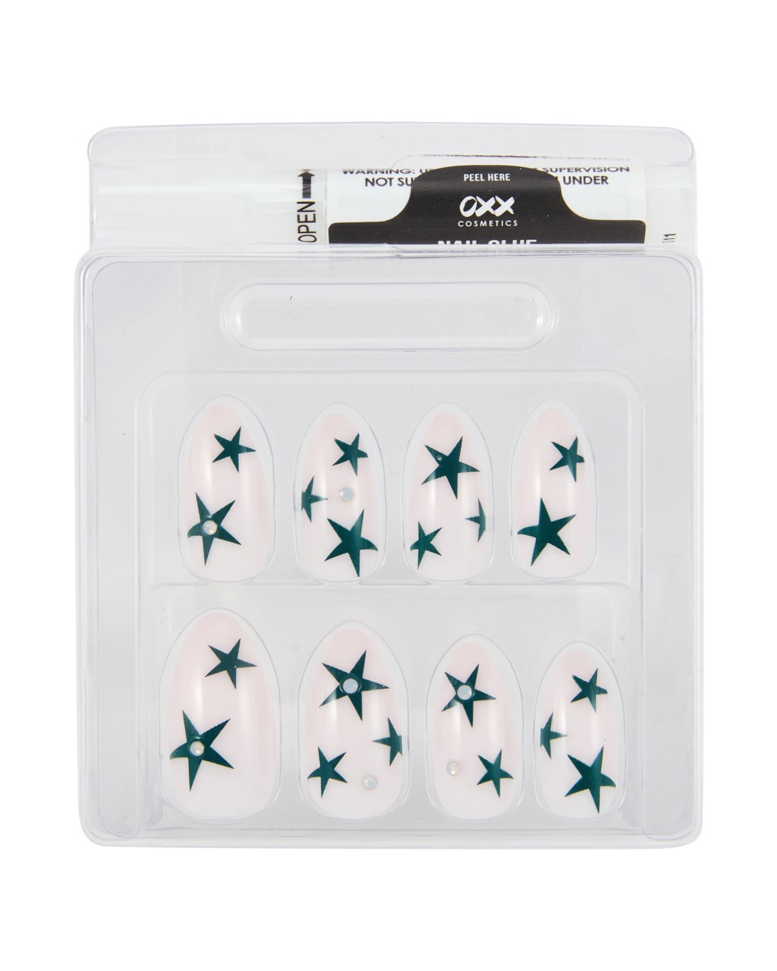 Sold by KmartOXX Cosmetics 24 Pack Artificial Nails with Adhesive - Pointed Stiletto Shape, Teal Stars with Gems