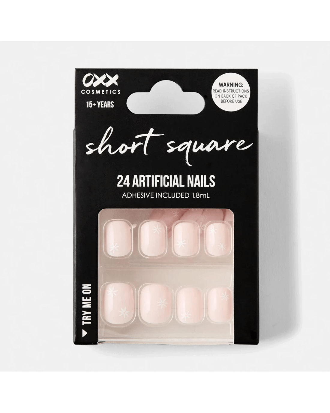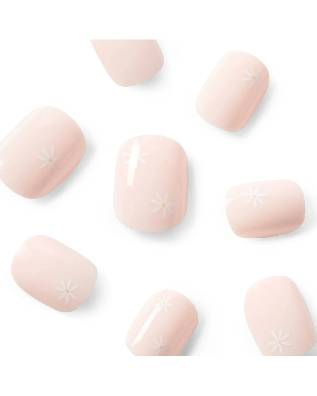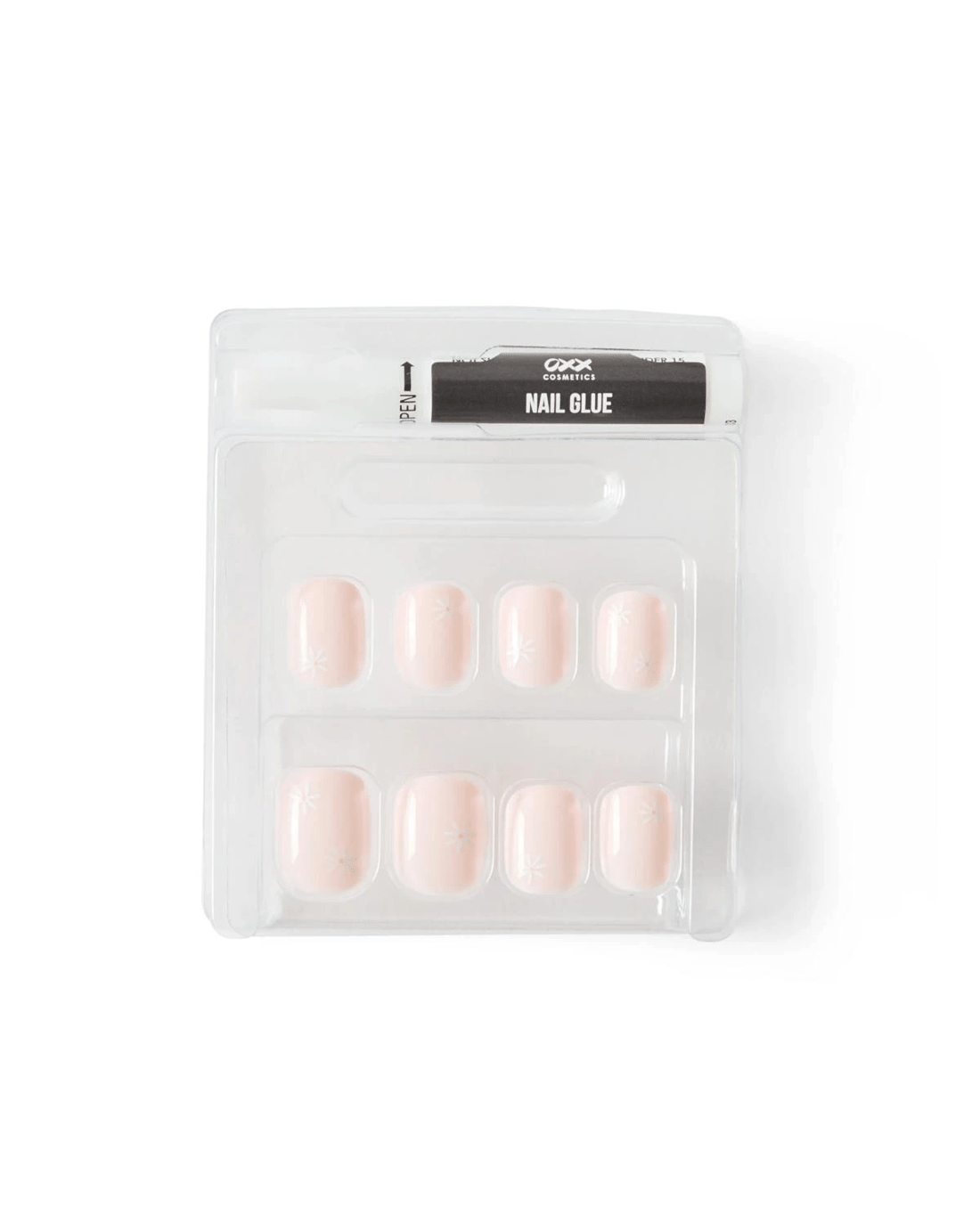 OXX Cosmetics 24 Pack Artificial Nails with Adhesive - Short Square Shape, Daisies