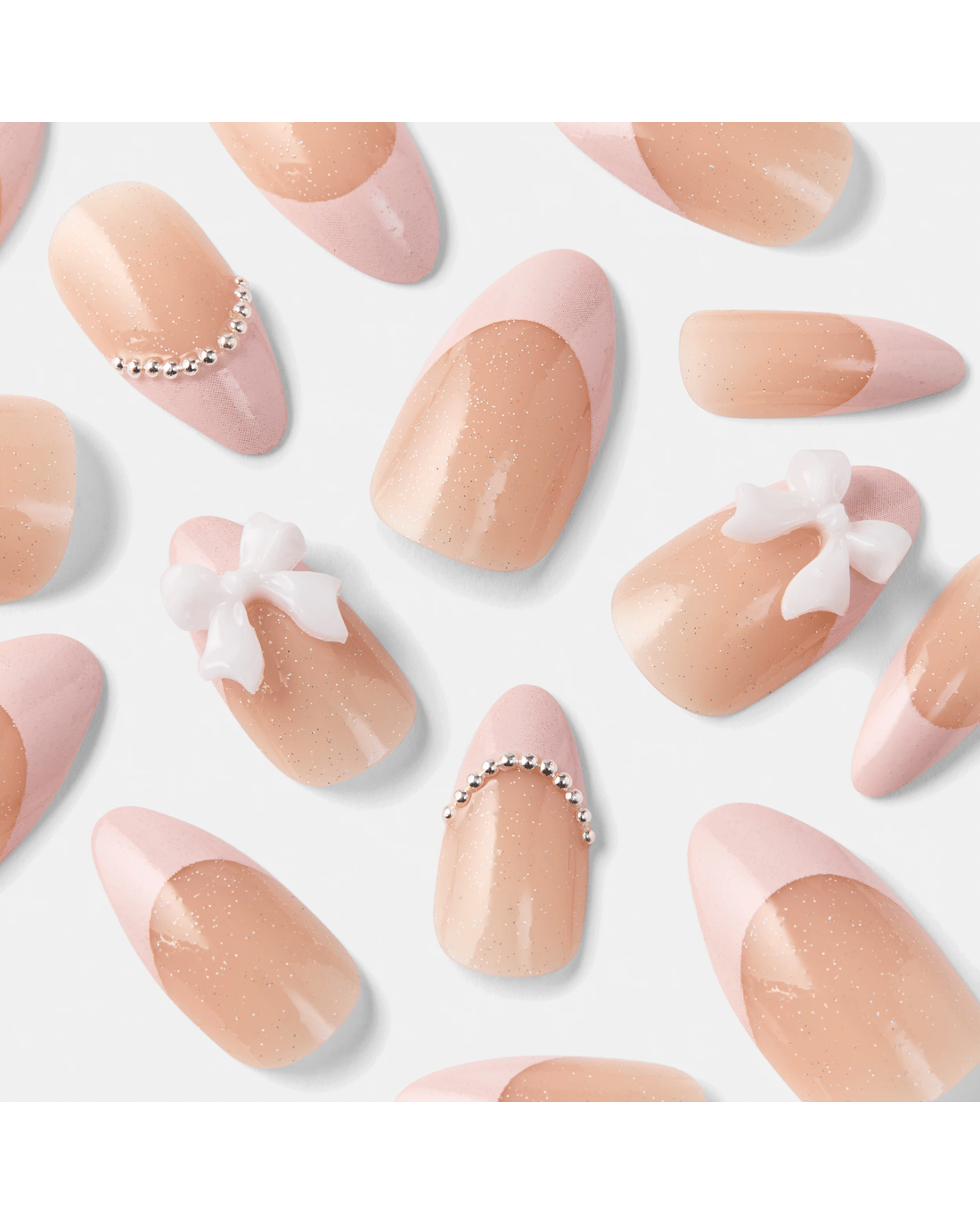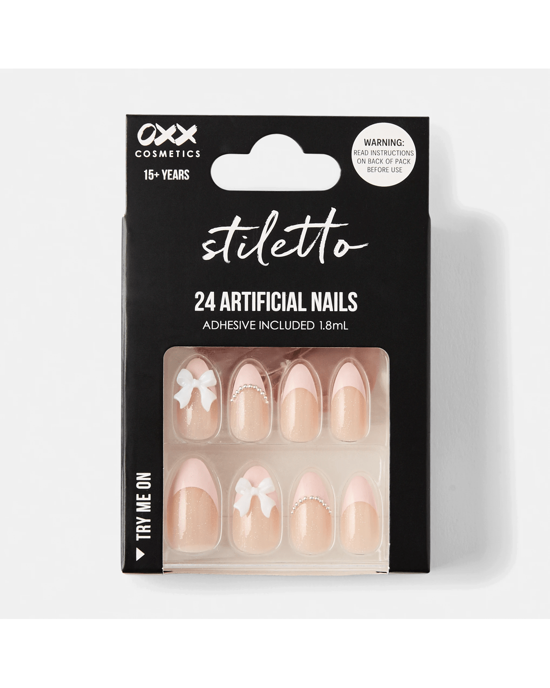 OXX Cosmetics 24 Pack Artificial Nails with Adhesive - Stiletto Shape, 3D Bow