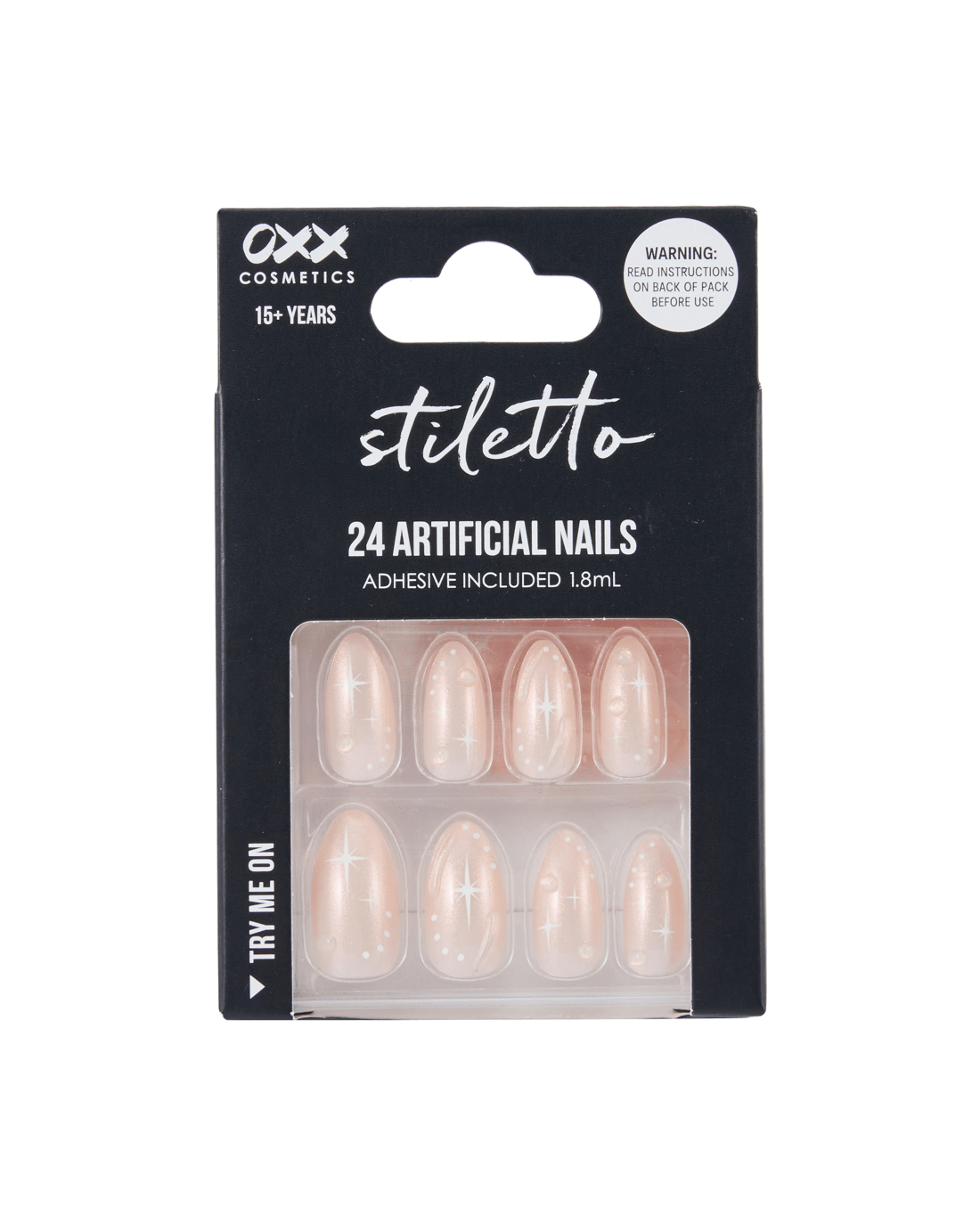Sold by KmartOXX Cosmetics 24 Pack Artificial Nails with Adhesive - Stiletto Shape, Soft Pink