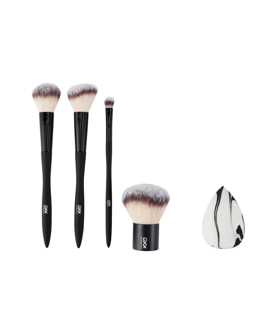 OXX Cosmetics 5 Piece Face and Eye Makeup Brush Set - Black