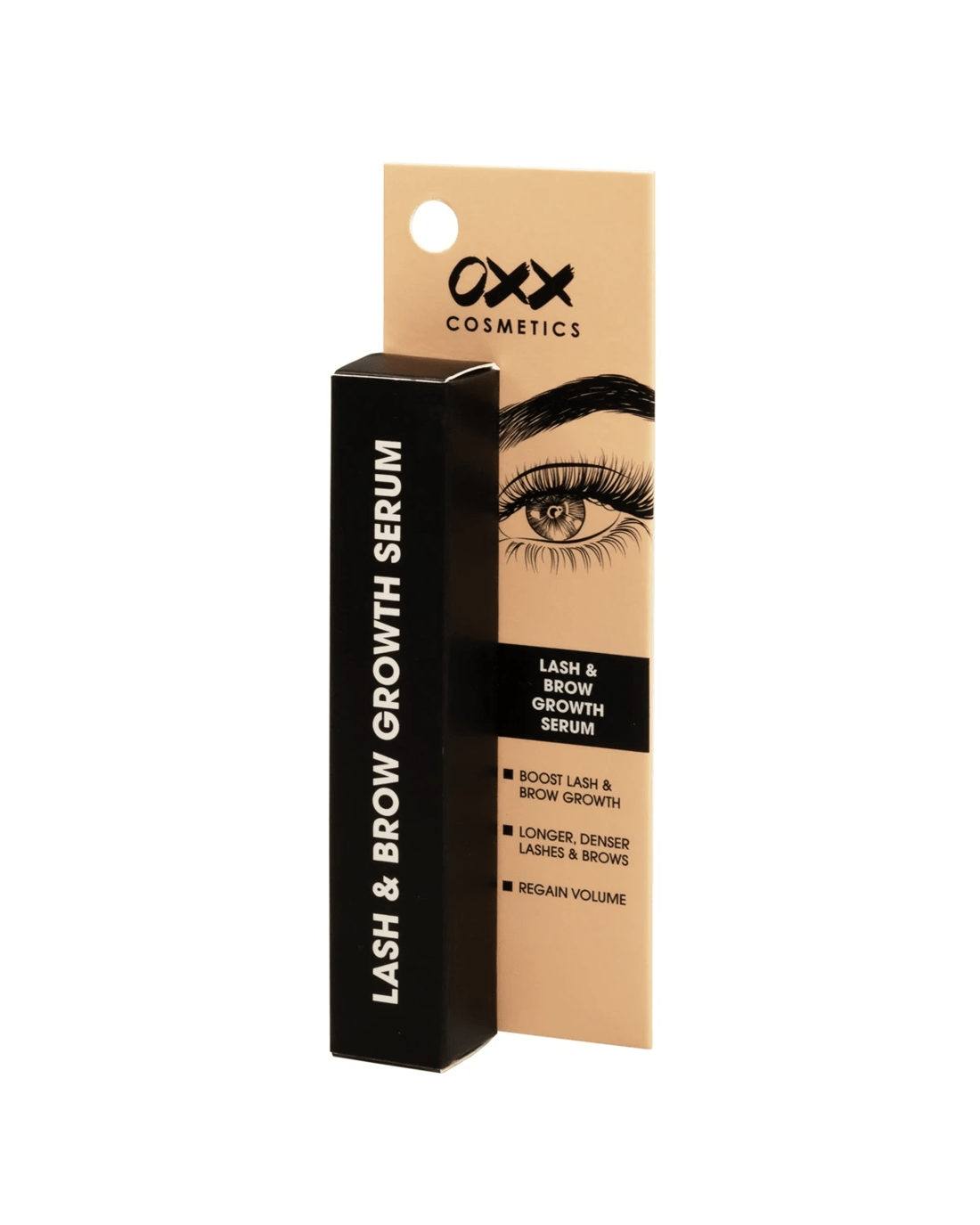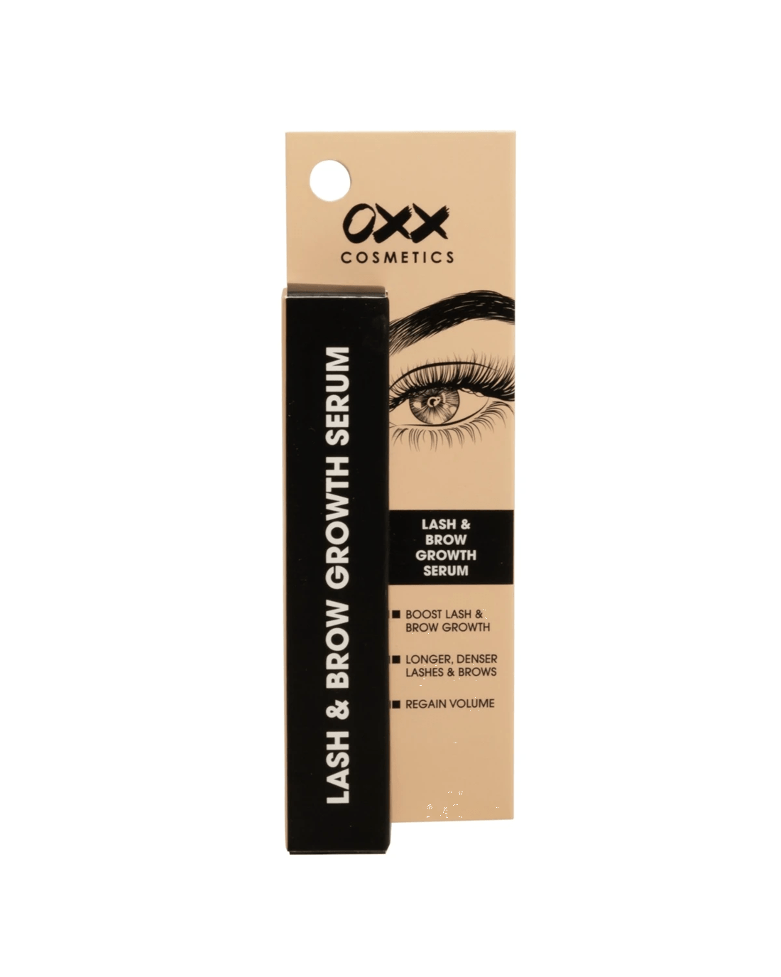 OXX Cosmetics Lash and Brow Growth Serum helps strengthen, minimise lash fallout and promote the natural growth of lashes and brows.