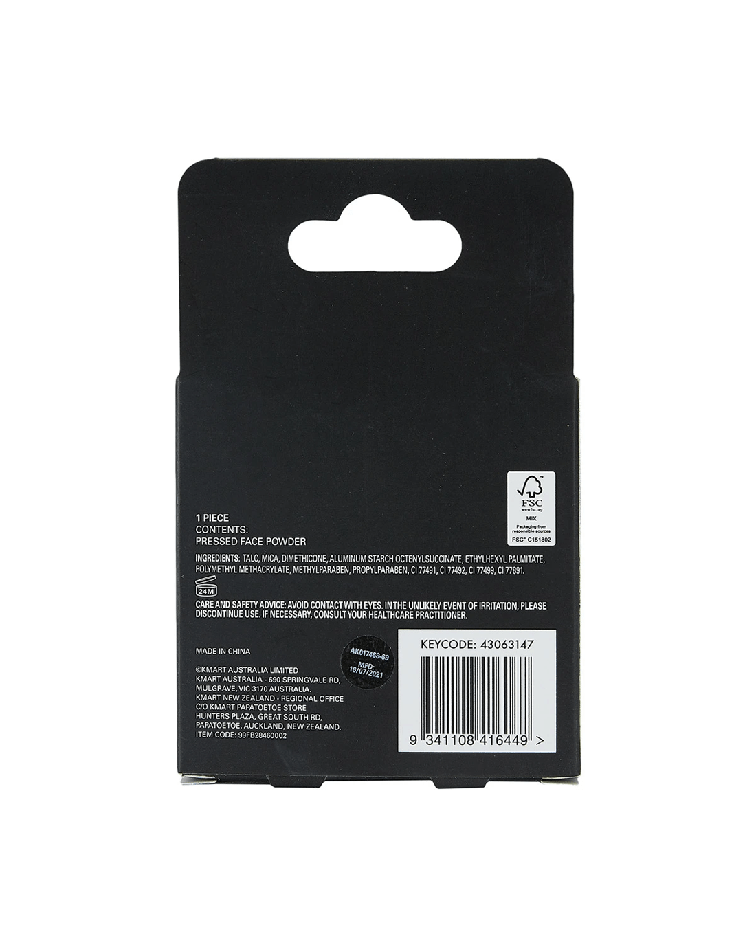 • Ingredients: Talc, MICA, Dimethicone, Aluminium Starch Octenylsuccinate, Ethylhexyl Palmitate, Polymethyl Methacrylate, Methylparaben, Propylparaben, CI 77491, CI 77492, CI 77499, CI 77891