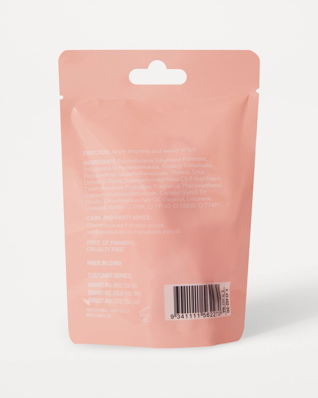 • Ingredients: Polyisobutene, Ethylhexyl Palmitate, Polyglyceryl-10 Pentaisostearate, Tridecyl Trimellitate, Pentaerythrityl Tetraethylhexanoate, Triolein, Silica Dimethyl Silylate, Dipentaerythrityl Hexa C5-9 Acid Esters, Triethylhexanoin, Polybutene, Fragrance, Phenoxyethanol, Calcium Aluminum Borosilicate, Caprylyl Glycol, Tin Oxide, Citrus Aurantium Peel Oil, Geraniol, Limonene, Linalool, Vanillin, CI 77891, CI 19140, CI 15850, CI 77491
