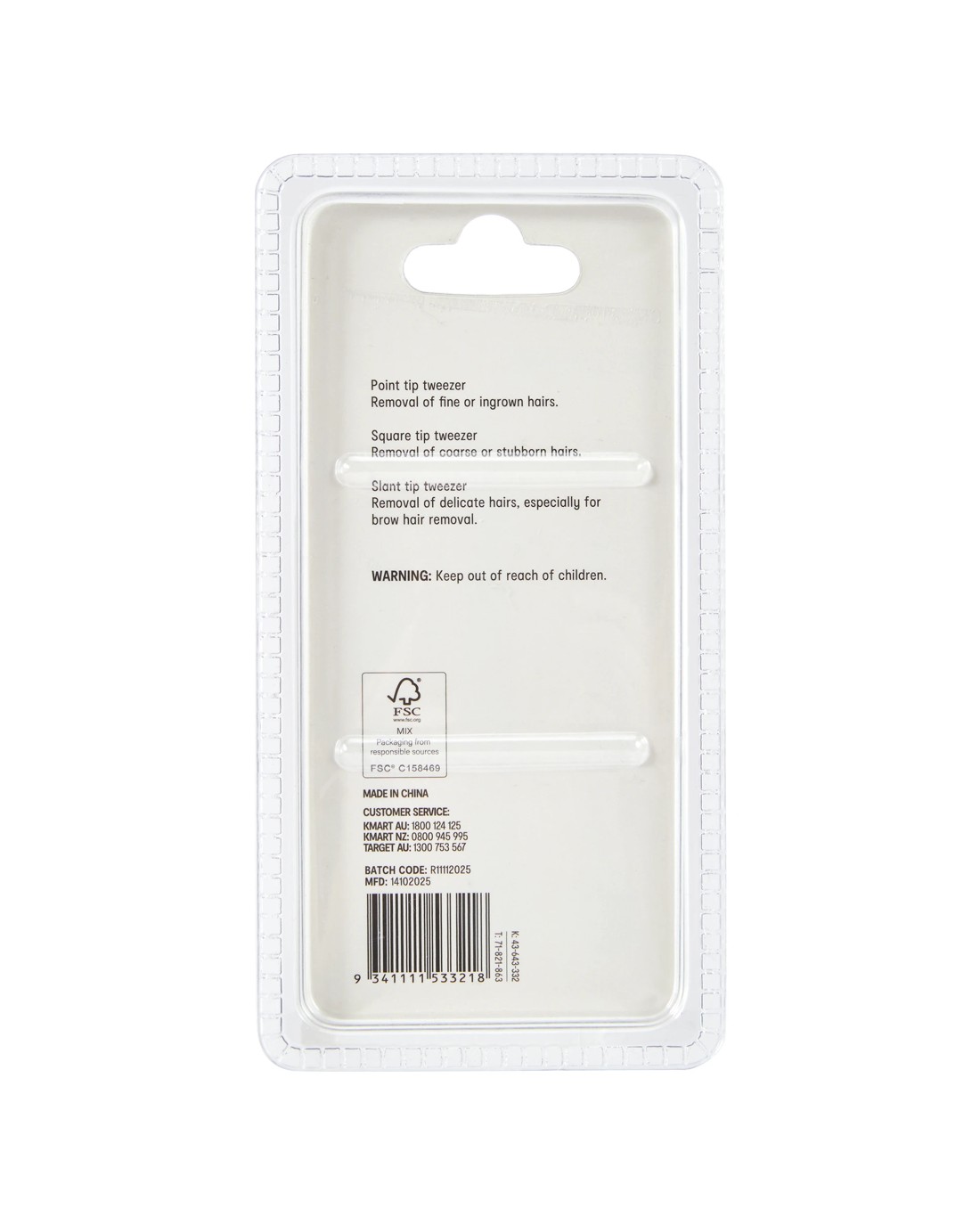 • Slant tip tweezer: 9.3cm (H) x 0.9cm (W) x 0.6cm (D)