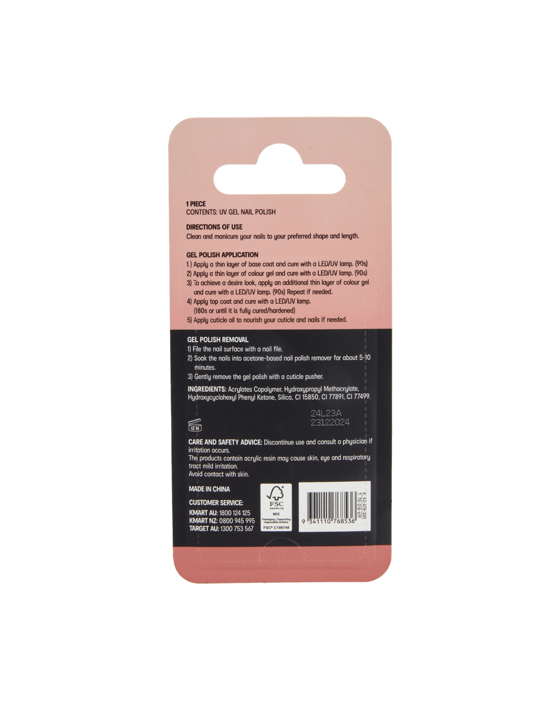 • Ingredients: Acrylates Copolymer, Hydroxypropyl Methacrylate, Hydroxycyclohexyl Phenyl Ketone, Silica, CI 15850, CI 77891, CI 77499