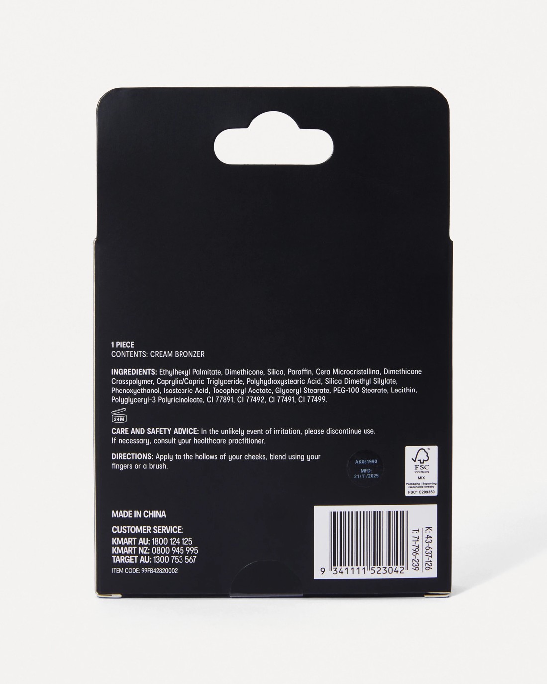 • Includes 1 x cream bronzer