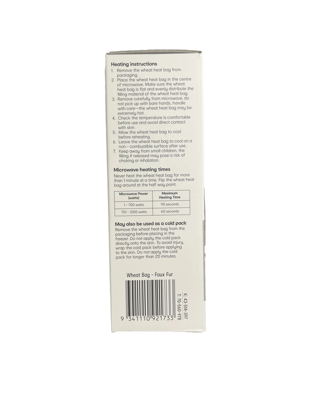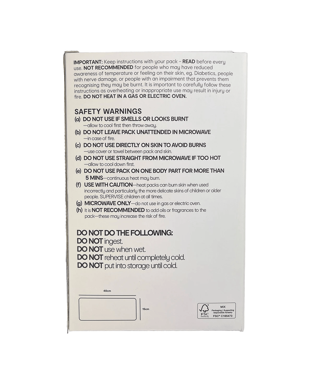 Caution: Heat packs can burn skin when used incorrectly and particularly the more delicate skins of children or older people. Supervise children at all times.