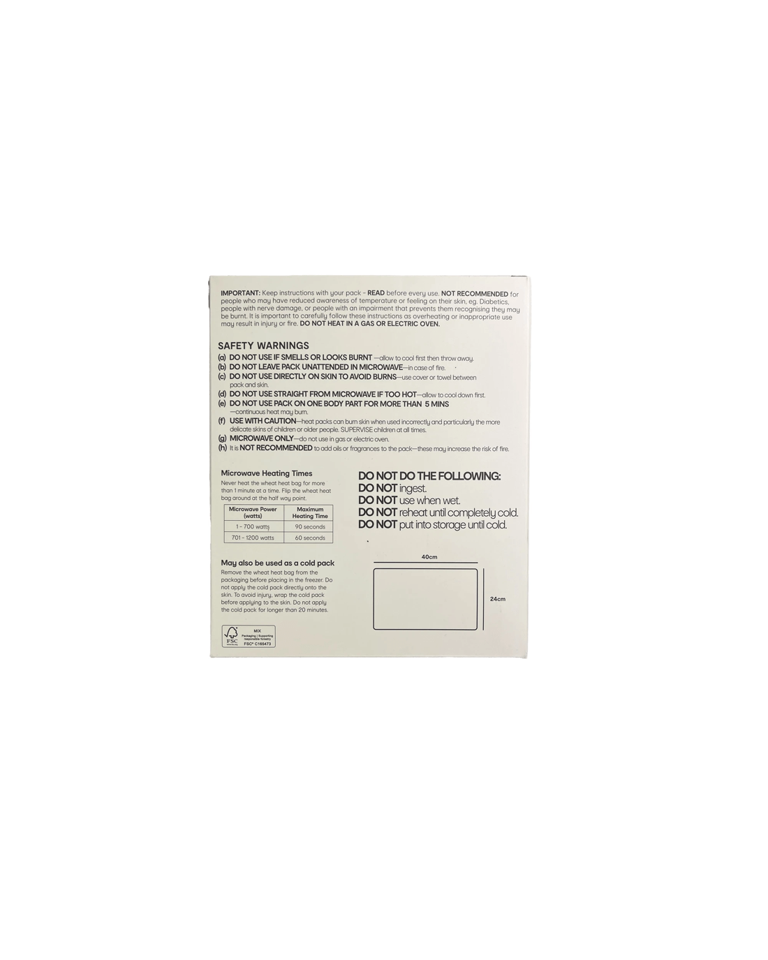 • Allow the wheat bag to cool before reheating