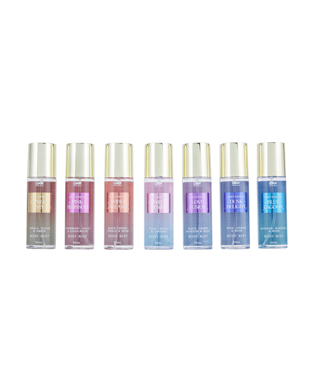 - Sweet Desire Body Mist: Alcohol Denat., Aqua, Fragrance, PEG-40 Hydrogenated Castor Oil, Citral, Citrus Aurantium Peel Oil, Limonene, Linalyl Acetate