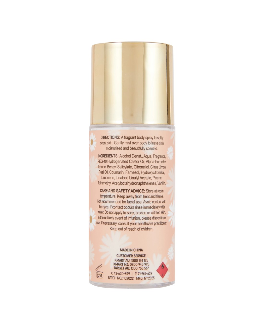 - Body mist: A fragrant body spray to softly scent skin. Gently mist over body to leave skin moisturised and beautifully scented