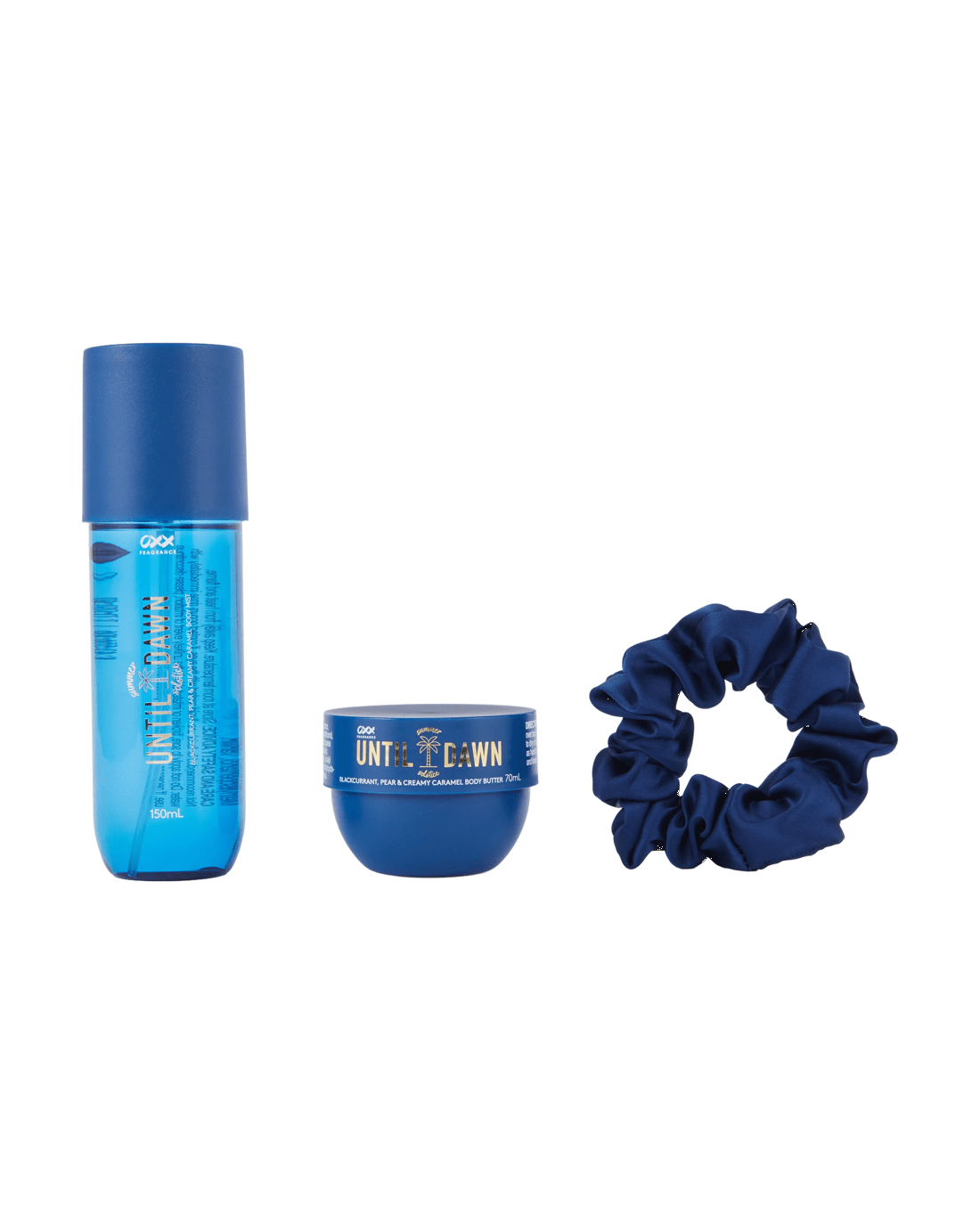 - Includes 1 x body mist, 1 x body butter and 1 x scrunchie
