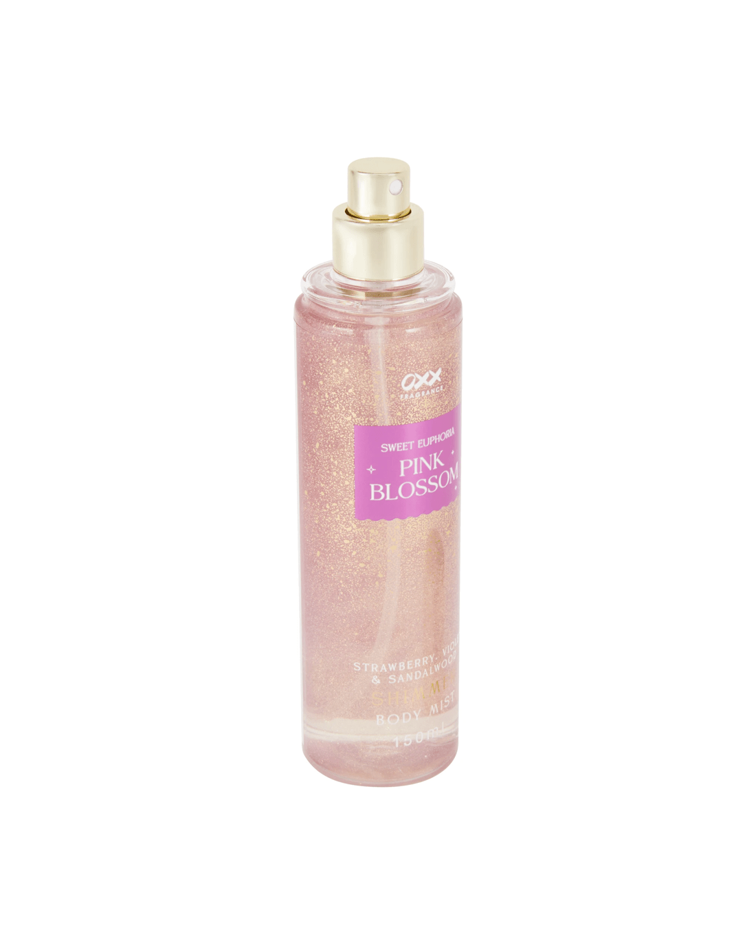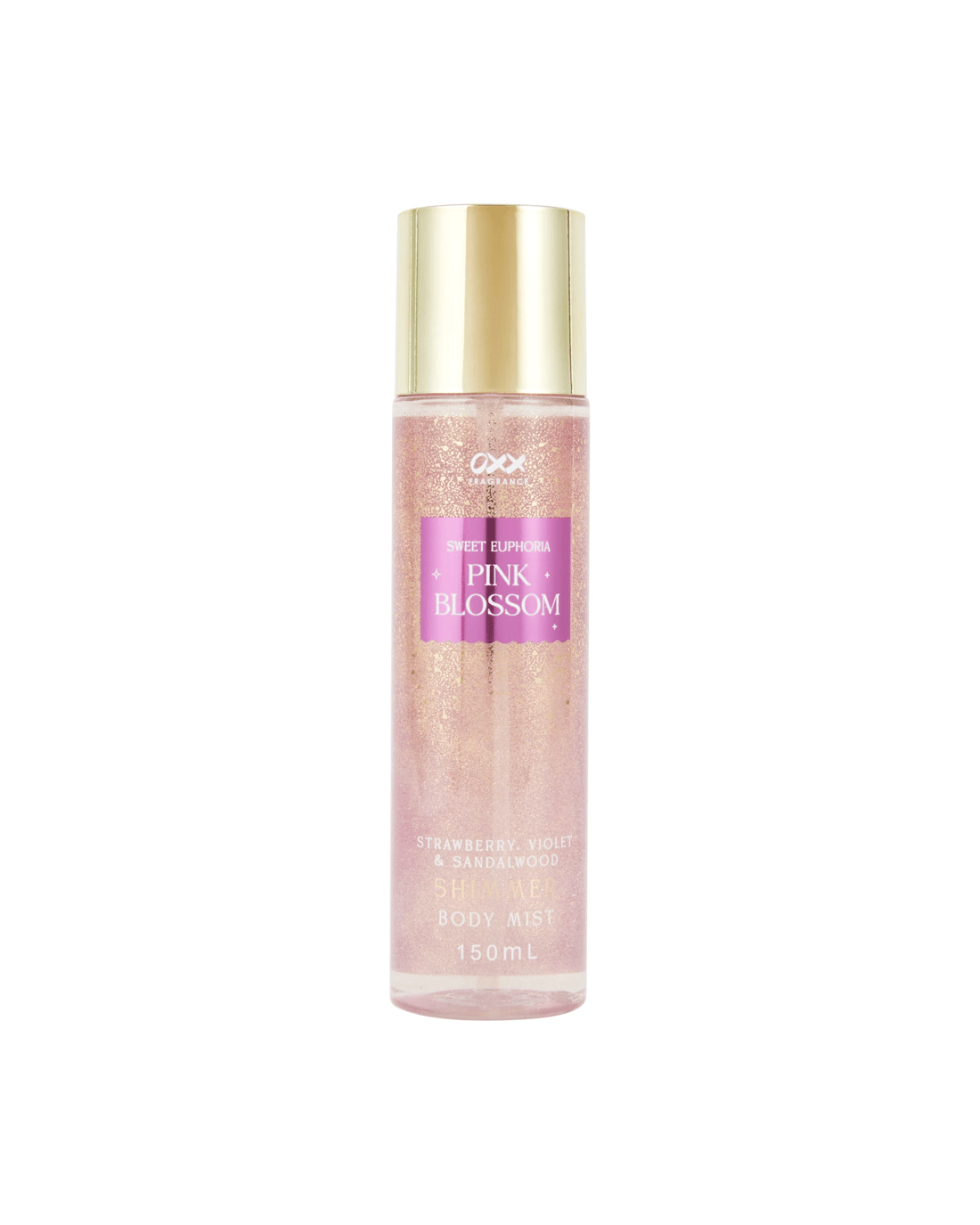 Experience the enchanting blend of strawberry, violet and sandalwood with the OXX Fragrance Sweet Euphoria Pink Blossom Shimmer Body Mist. This 150ml mist adds a touch of shimmer, leaving you feeling refreshed and beautifully scented.