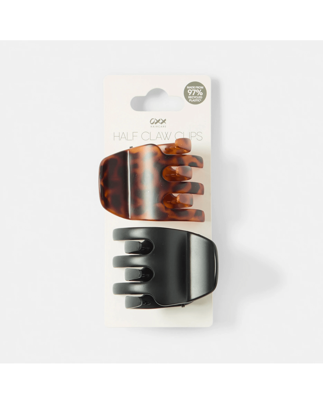 Sold by KmartOXX Haircare 2 Pack Black and Brown Half Claw Hair Clips