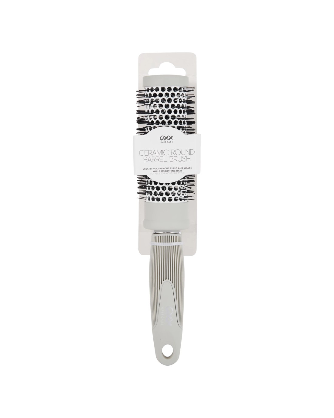 Achieve salon-quality styles at home with this OXX Haircare Ceramic Round Barrel Brush in Grey - perfect for blow-drying and styling all hair types.
