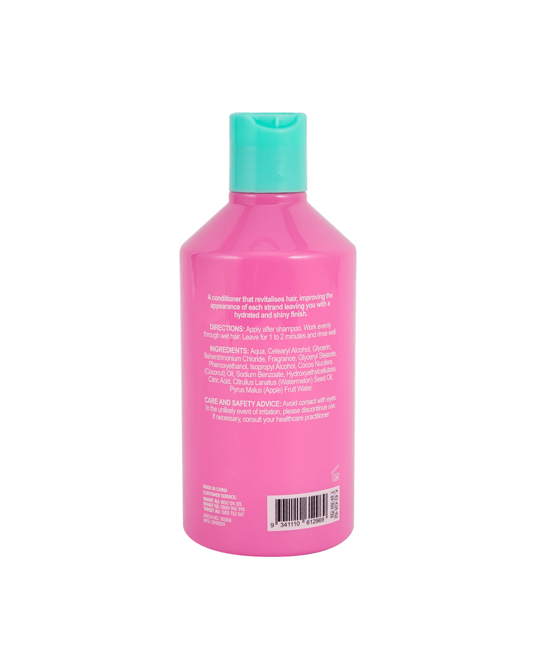 • Ingredients: Aqua, Cetearyl Alcohol, Glycerin, Behentrimonium Chloride, Fragrance, Glyceryl Stearate, Phenoxyethanol, Isopropyl Alcohol, Cocos Nucifera (Coconut) Oil, Sodium Benzote, Hydroxyethylcellulose, Citric Acid, Citrullus Lanatus (Watermelon) Seed Oil, Pyrus Malus (Apple) Fruit Water