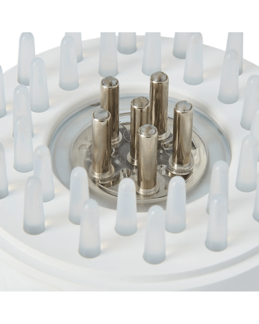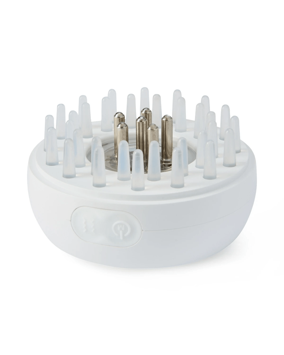 Revitalise your hair and scalp with our innovative LED Scalp Massager. Combining the benefits of LED light therapy with gentle massage, this device helps strengthen hair follicles and boost hair shine. With three LED settings, it effectively targets specific hair and scalp concerns. The soothing bristles provide a relaxing massage that enhances the scalp care experience, while the built-in serum infuser ensures even distribution of your favourite hair serums. Transform your scalp care routine into a luxurious mini-spa experience at home.