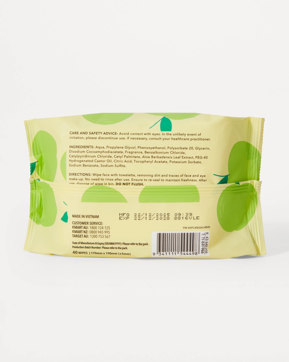 OXX Skincare 40 Pack Biodegradable Facial Wipes - Green Apple and Aloe Vera