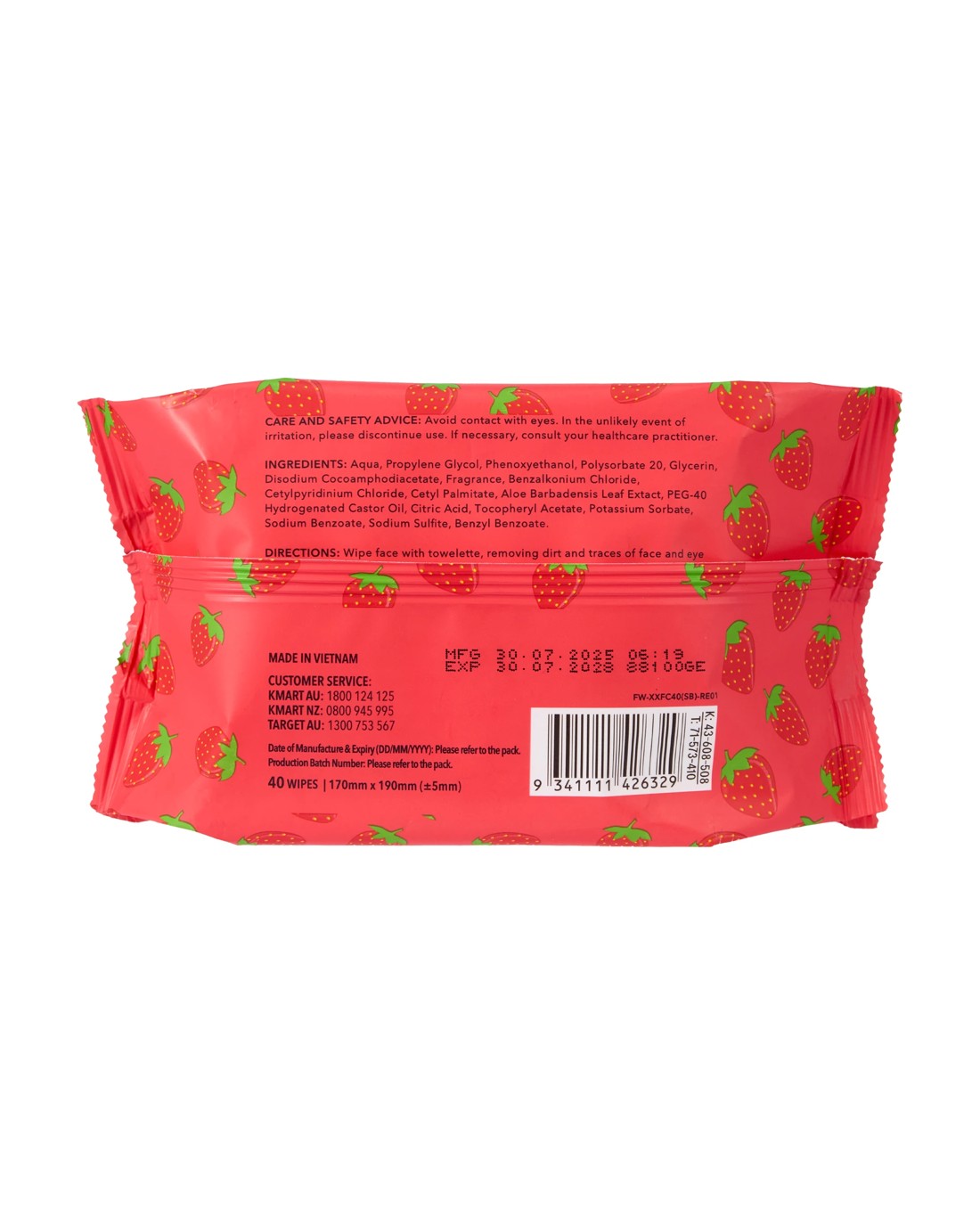 Sold by KmartOXX Skincare 40 Pack Biodegradable Facial Wipes - Strawberry
