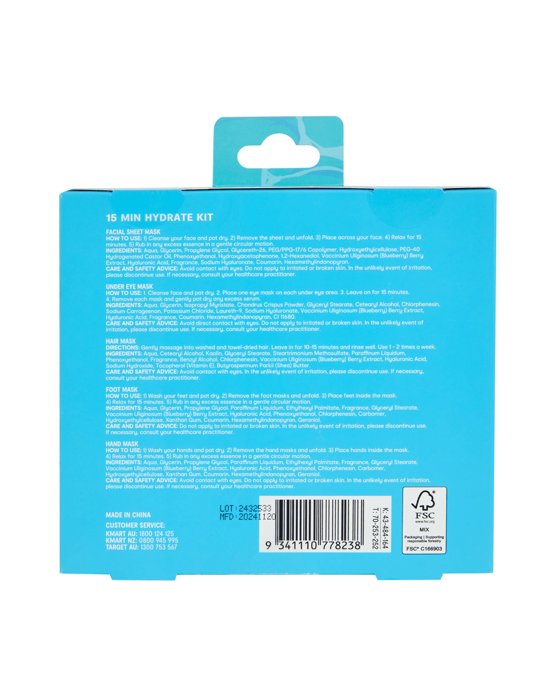 OXX Skincare 5 Pack 15 Min Hydrate Kit - Blueberry Extract and Hyaluronic Acid