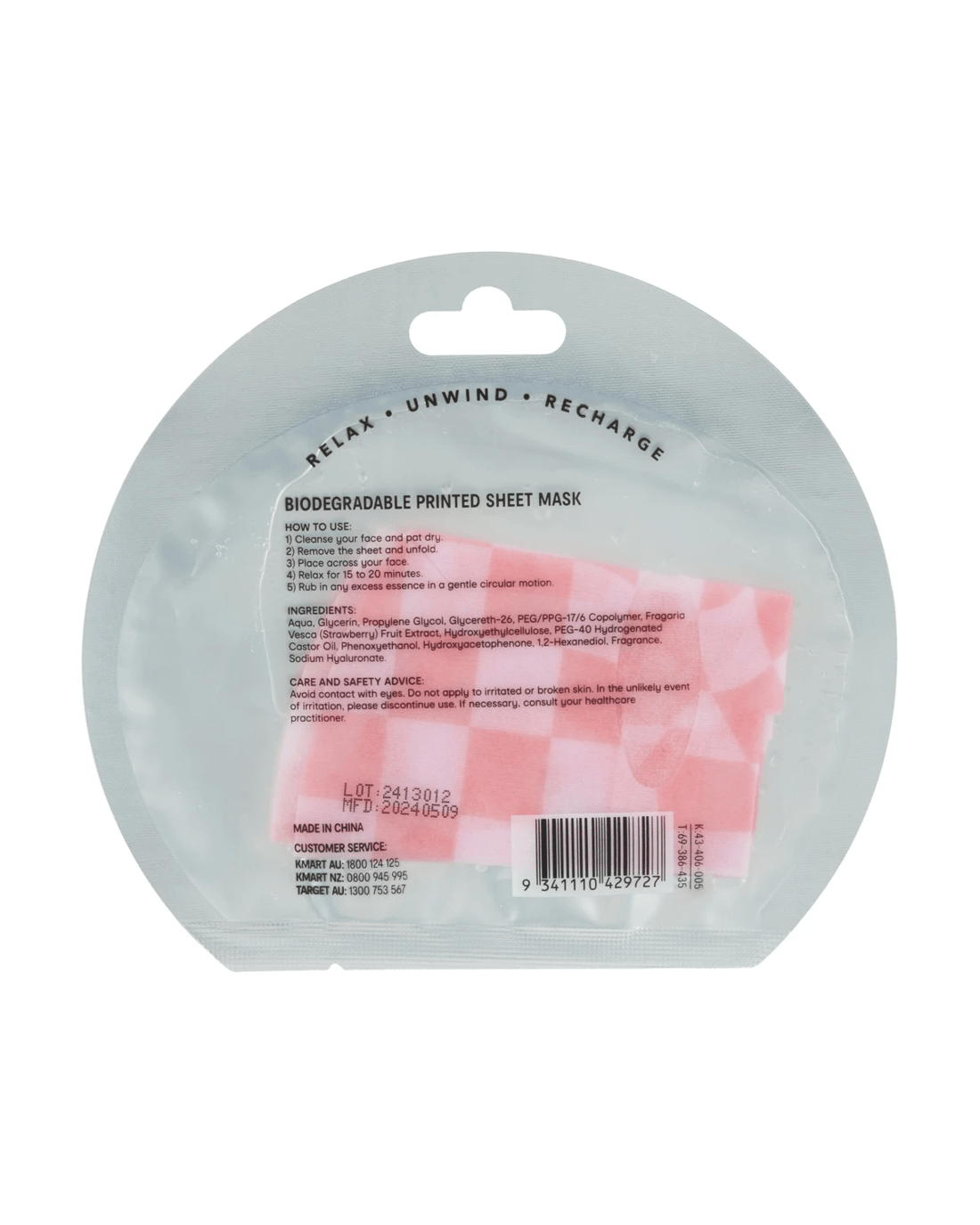Sold by KmartOXX Skincare Check Mate Printed Sheet Mask 20ml - Strawberry Extract