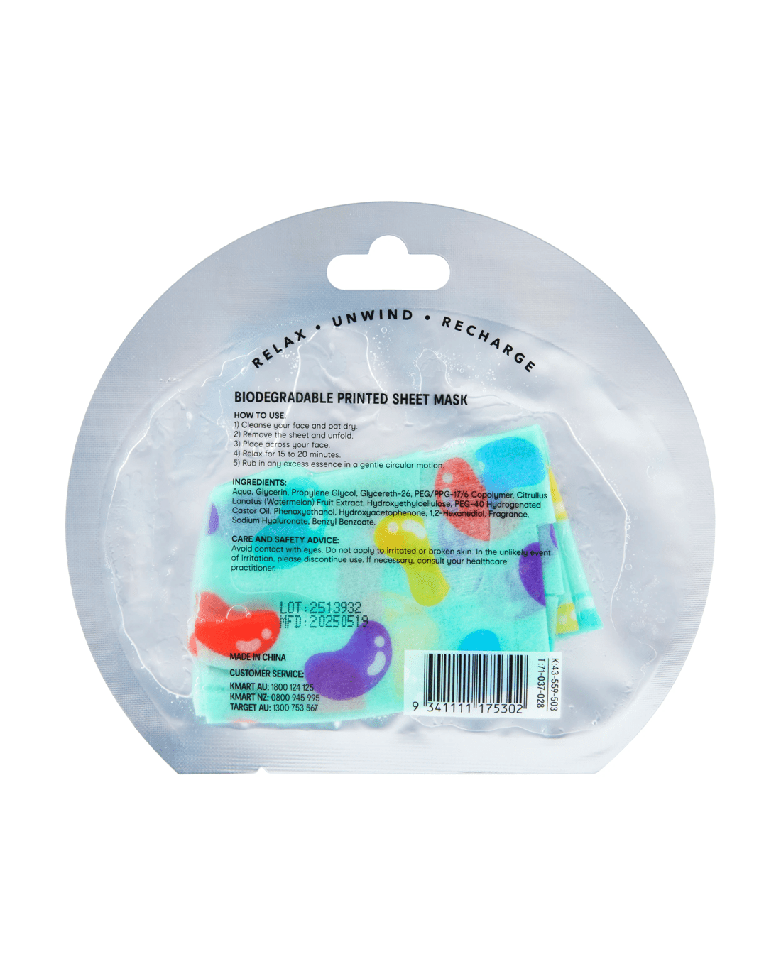 Sold by KmartOXX Skincare Jelly Beans Printed Sheet Mask 20ml - Watermelon Extract