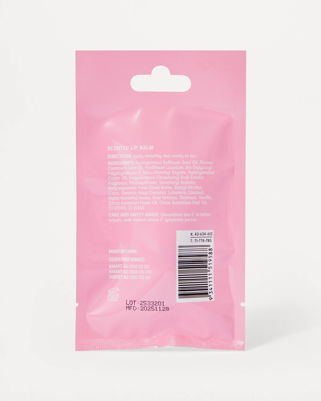 • Ingredients: Hydrogenated Safflower Seed Oil, Ricinus Communis Seed Oil, Paraffinum Liquidum, Bis-Diglyceryl Polyacyladipate-2, Silica Dimethyl Silylate, Hydrogenated Castor Oil, Fragaria Vesca (Strawberry) Fruit Extract, Fragrance, Phenoxyethanol, Tocopheryl Acetate, Butyrospermum Parkii (Shea) Butter, Benzyl Alcohol, Citral, Geraniol, Hexyl cinnamal, Limonene, Linalool, Alpha-Isomethyl Ionone, Rose Ketones, Terpineol, Vanillin, Citrus Aurantium Flower Oil, Citrus Aurantium Peel Oil, CI 47005 and CI 15850