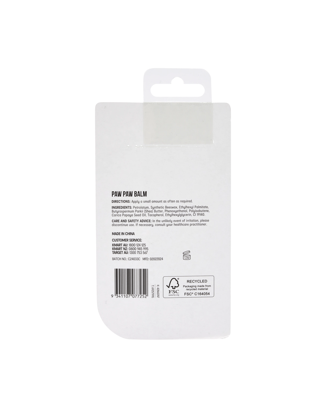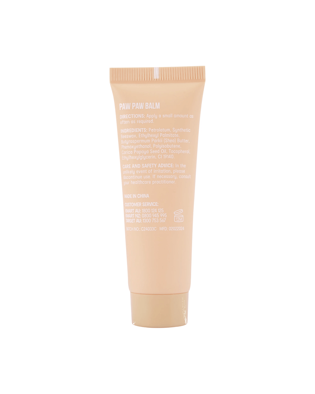 • Ingredients: Petrolatum, Synthetic Beeswax, Ethylhexyl Palmitate, Butyrospermum Parkii (Shea) Butter, Phenoxyethanol, Polyisobutene, Carica Papaya Seed Oil, Tocopherol, Ethylhexylglycerine, CI 19140