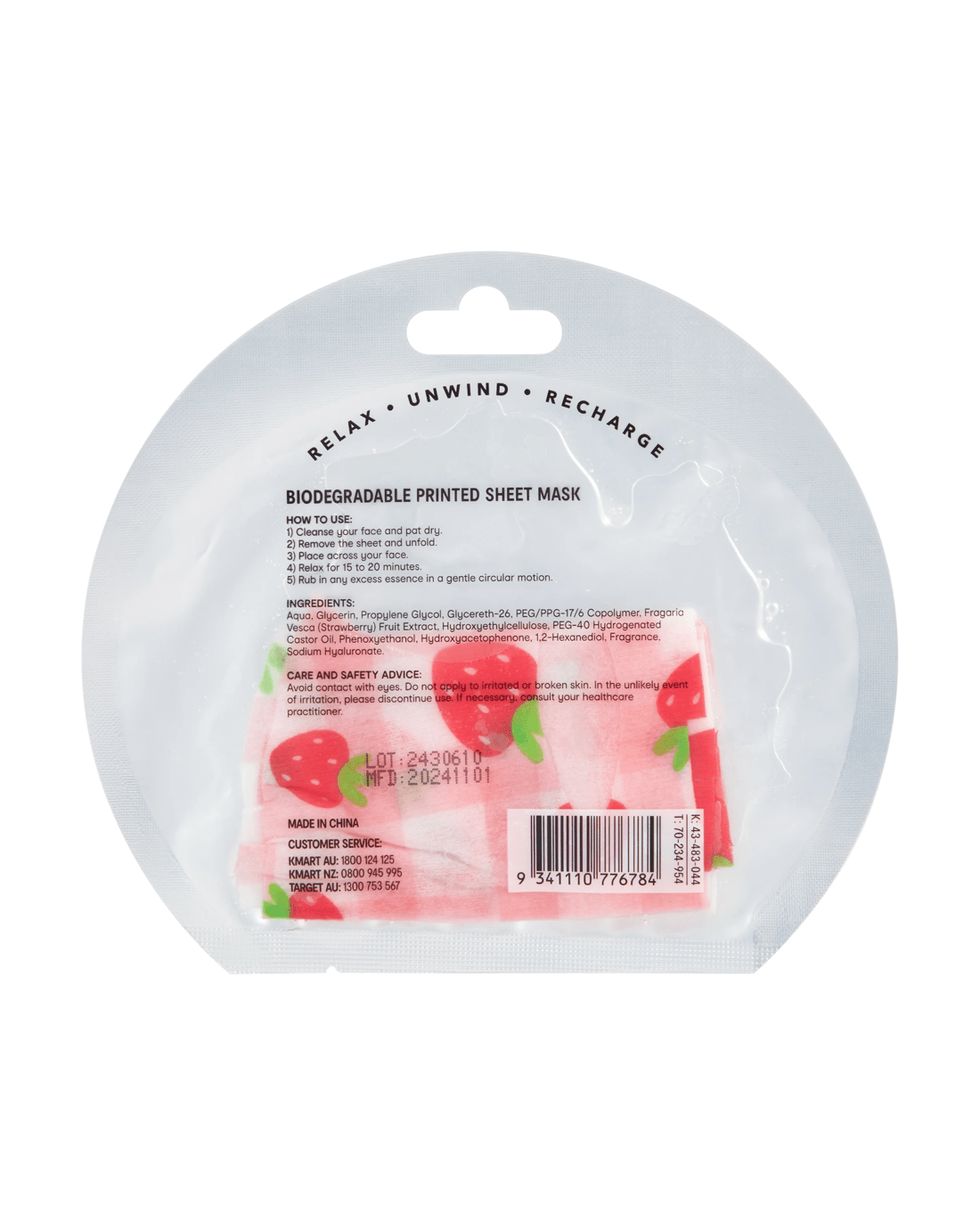 OXX Skincare Sweet Talk Printed Sheet Mask 20ml - Strawberry Extract