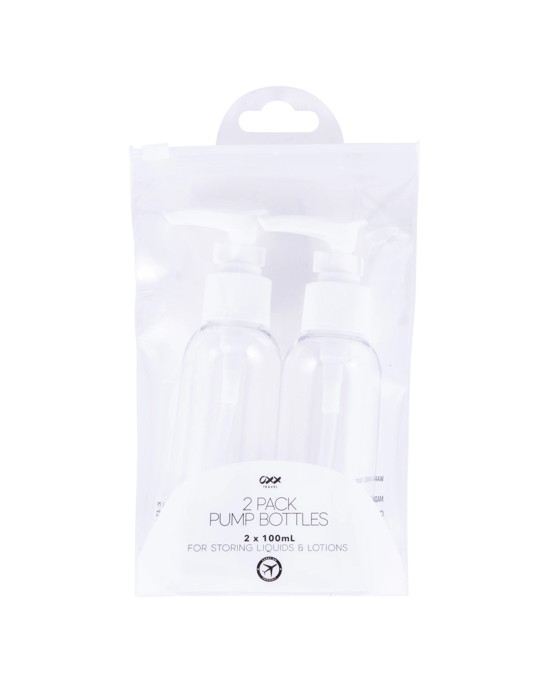 OXX Travel 2 Pack Pump Bottles - White and Clear