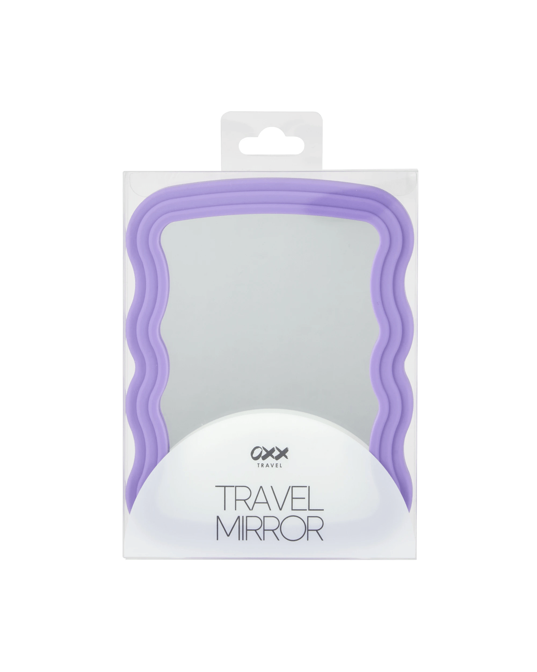 The OXX Travel Mirror features a stylish wavy frame and offers a clear reflection for effortless touch-ups on the go. Its compact design and back stand make it the perfect travel companion.